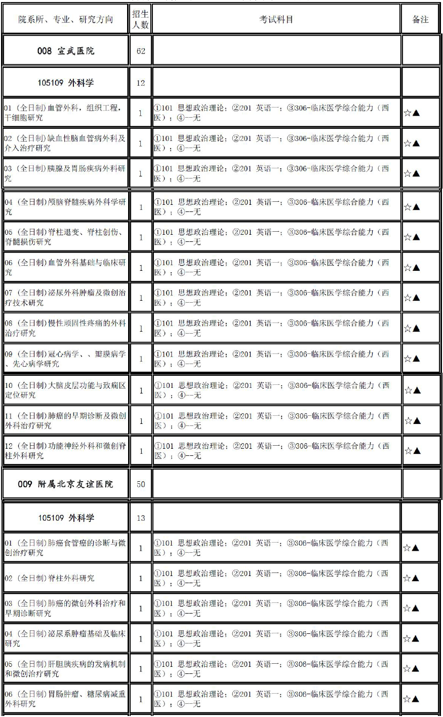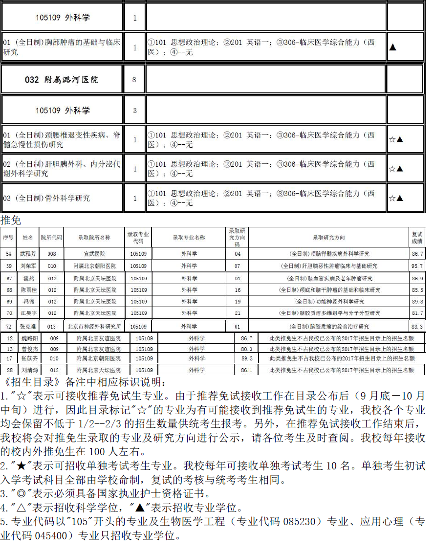 2017年首都医科大学105110妇产科学招生目录、推免名单