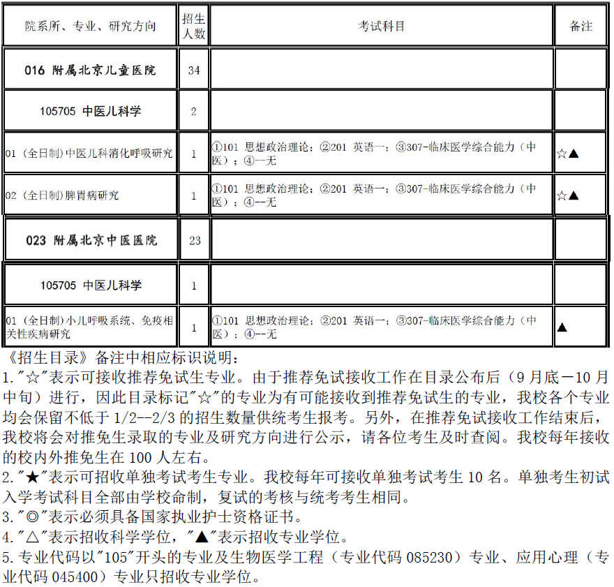 2017年首都医科大学105705中医儿科学招生目录
