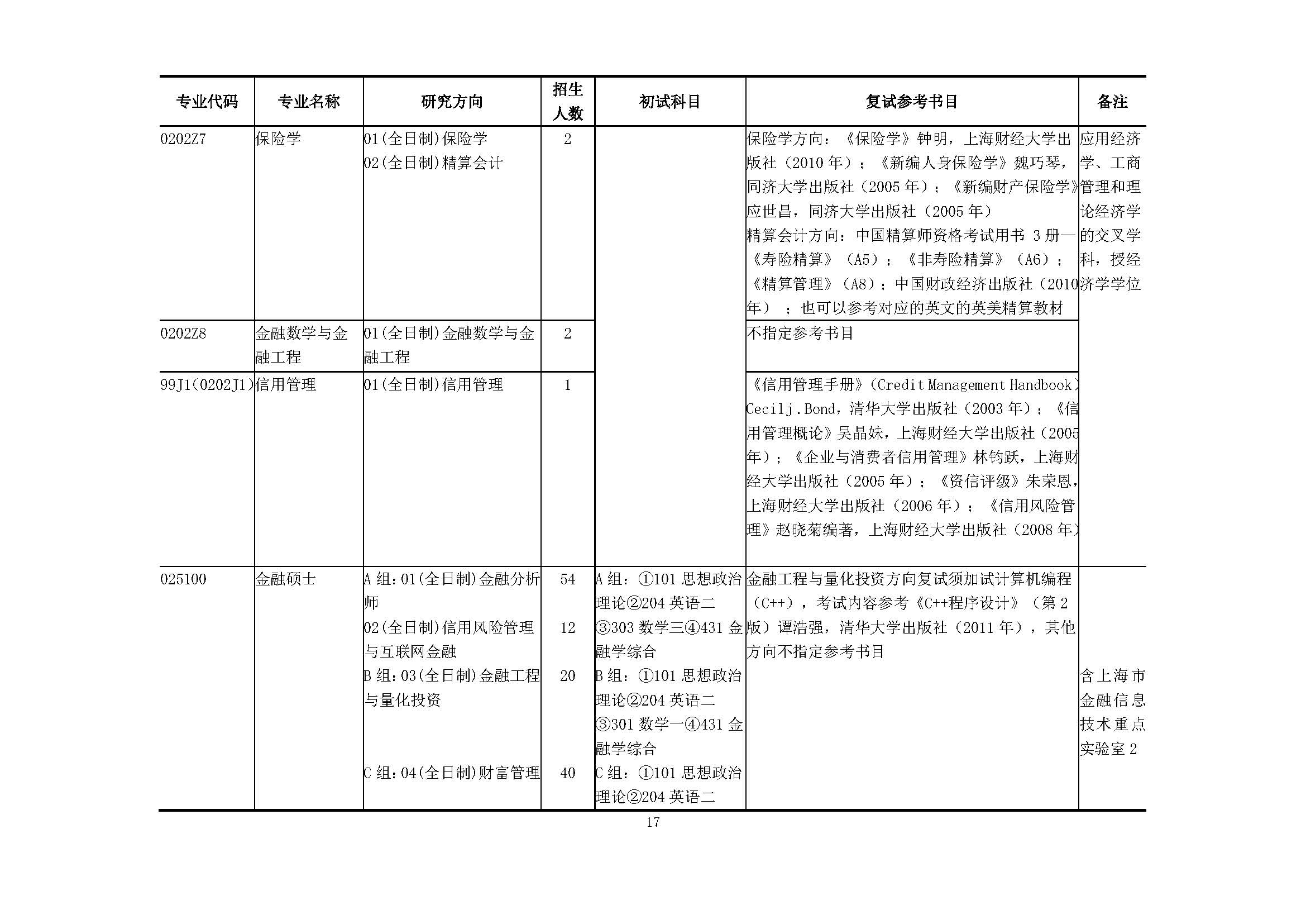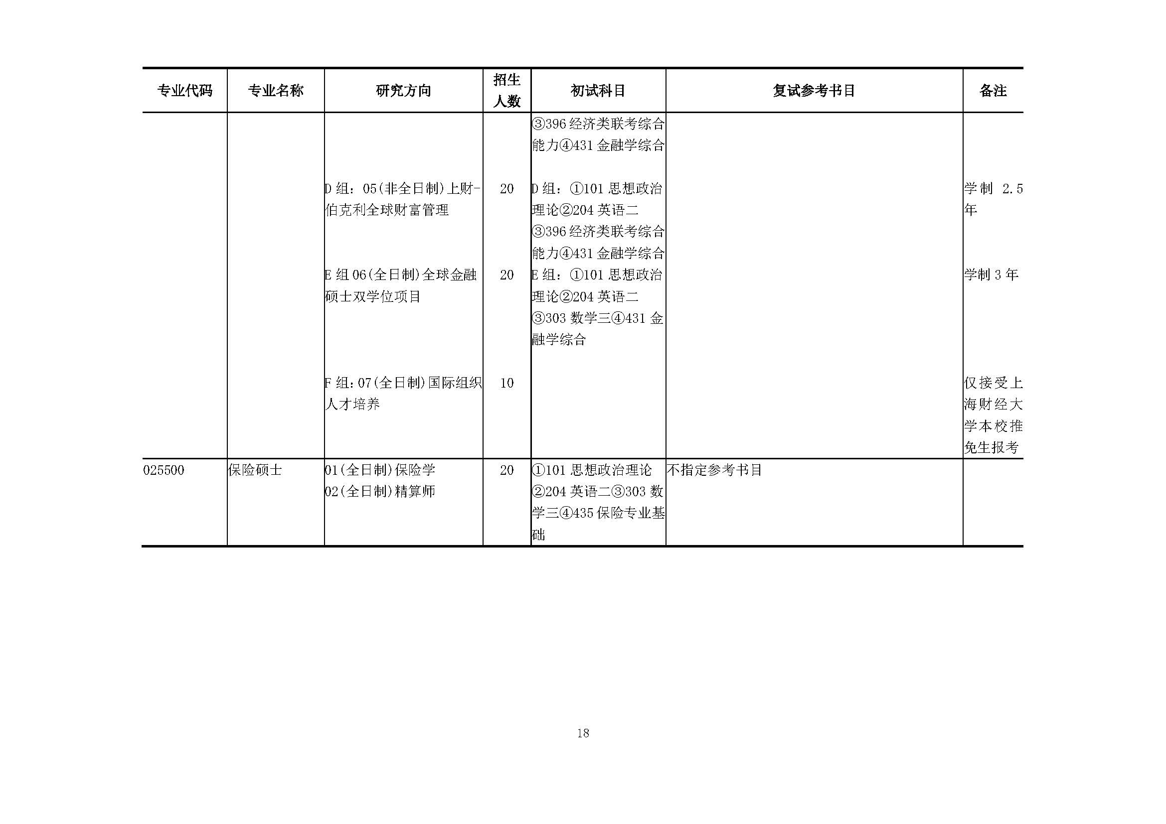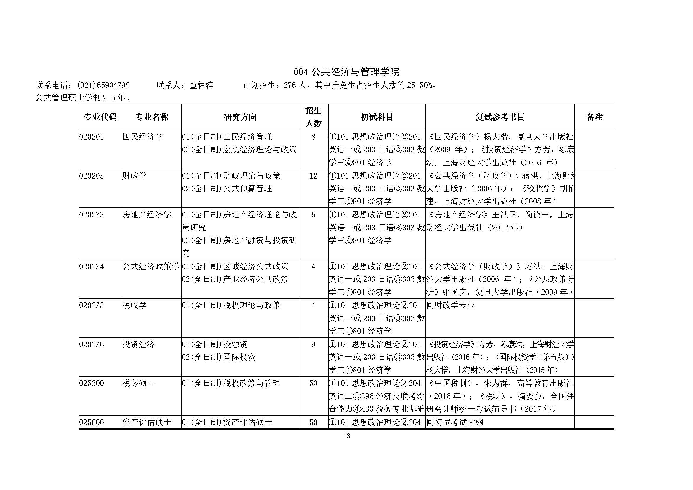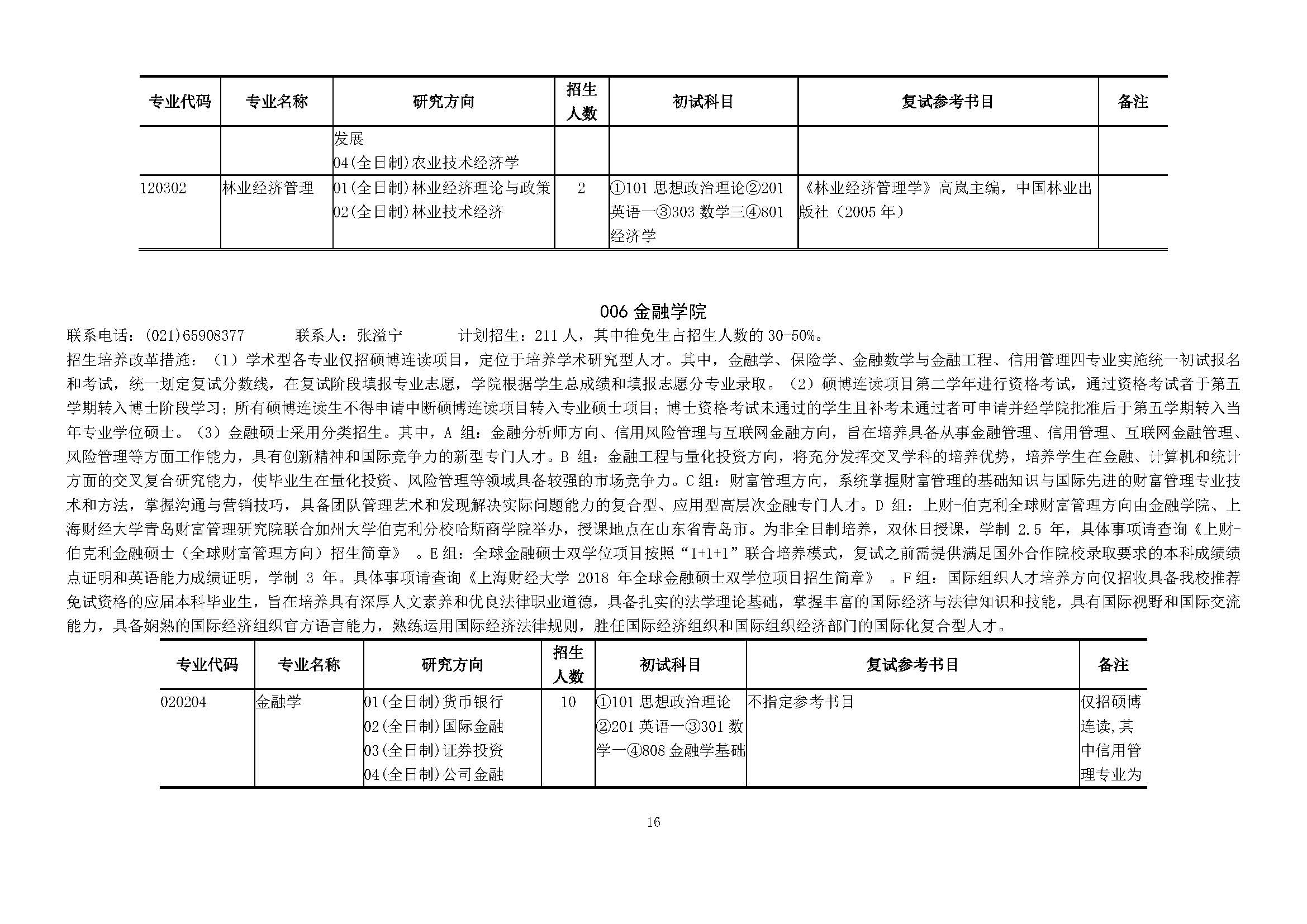 上海财经大学2018硕士研究生招生专业目录