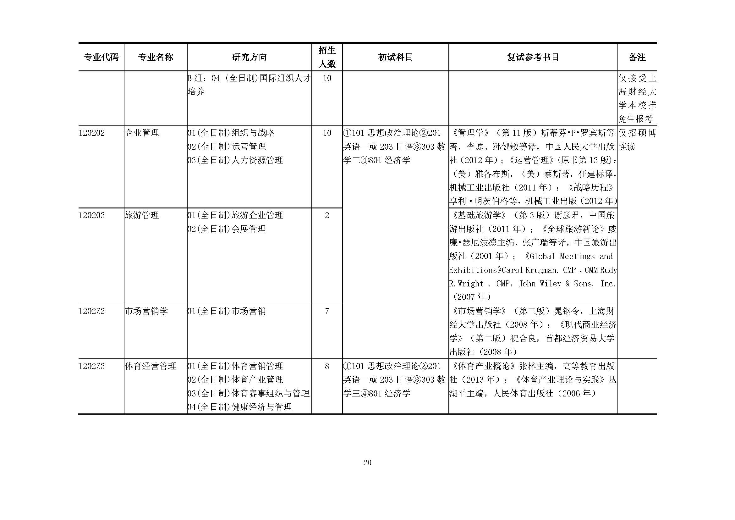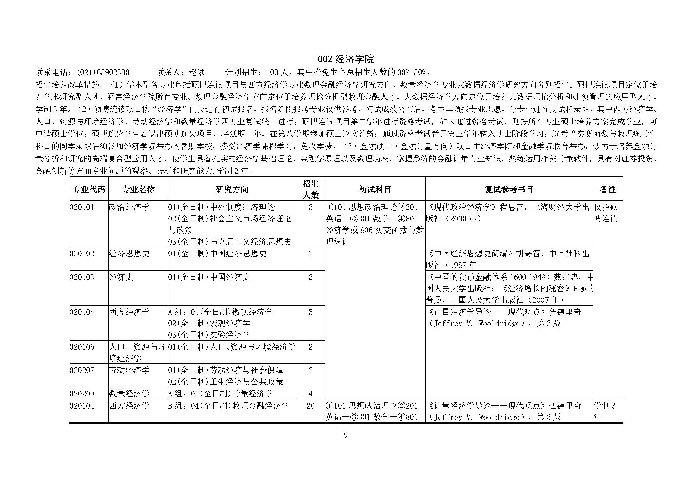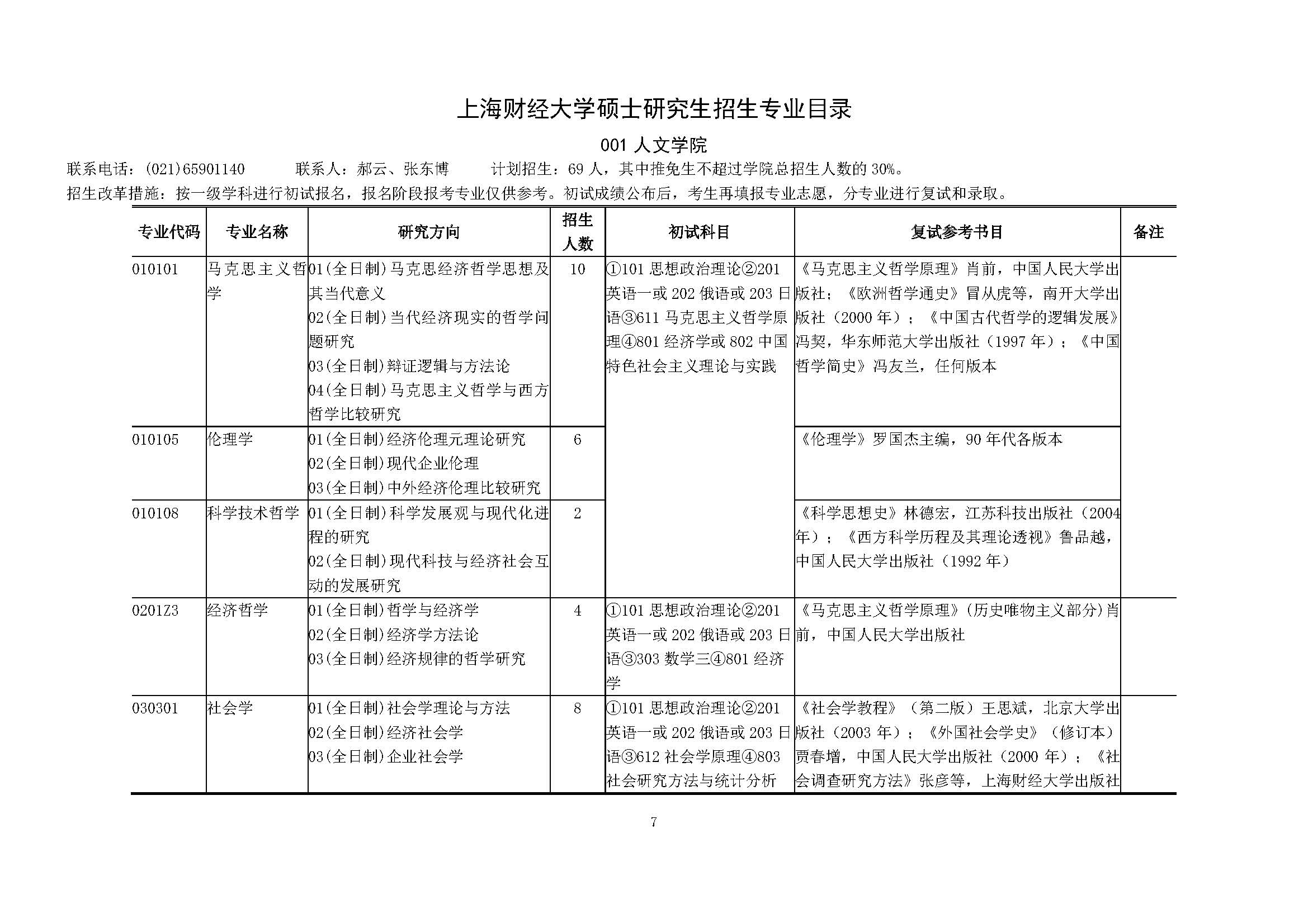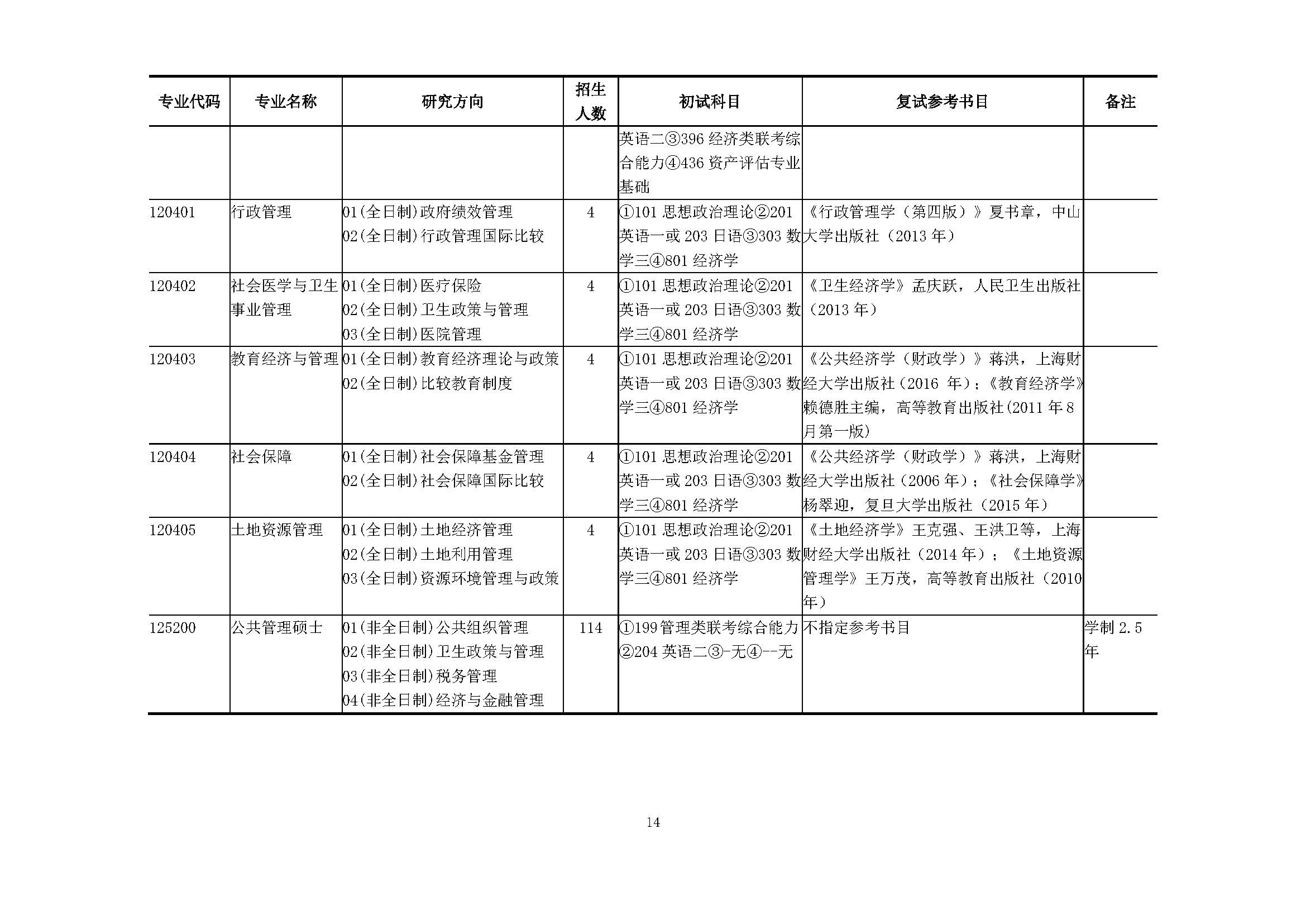 上海财经大学2018硕士研究生招生专业目录