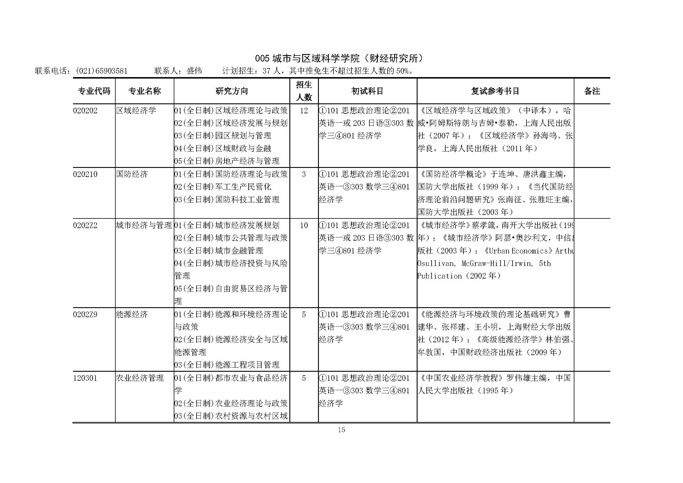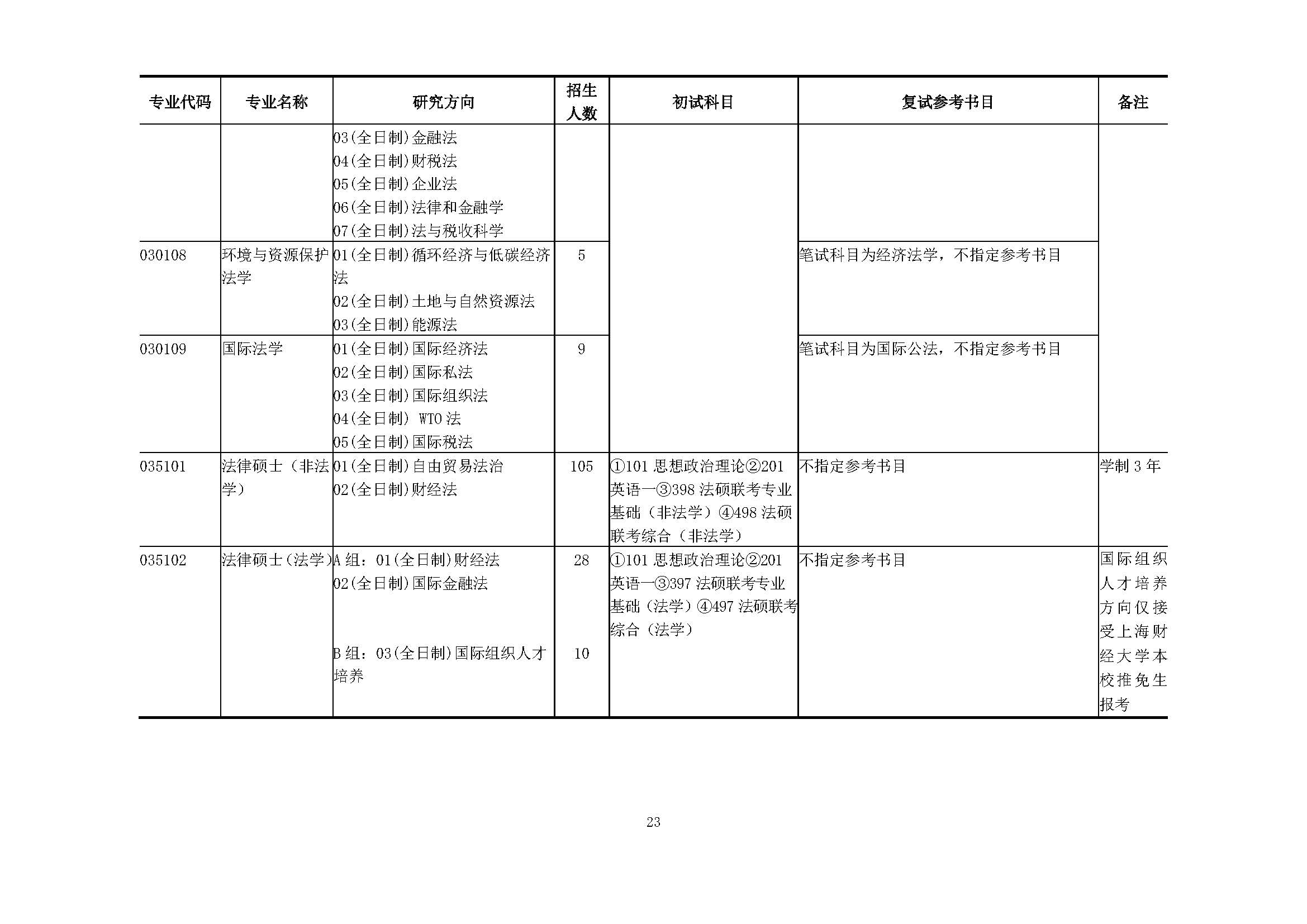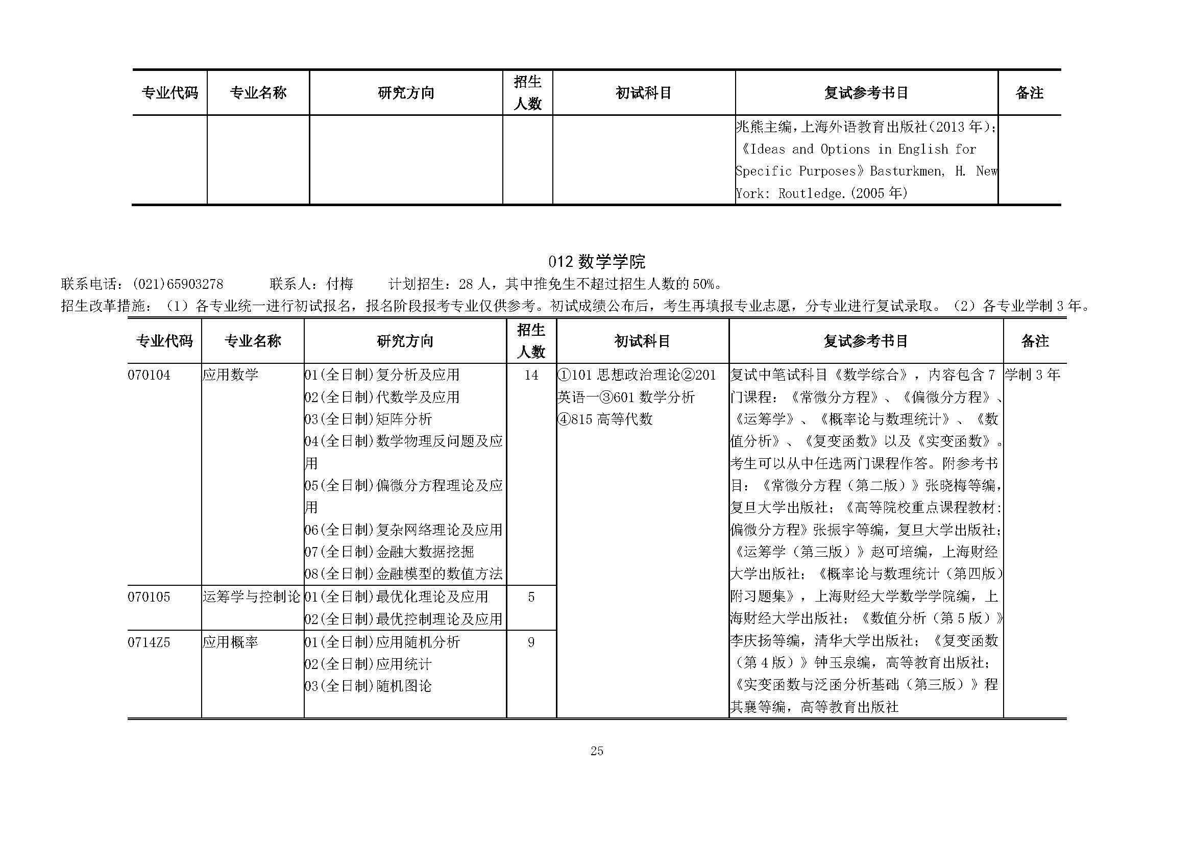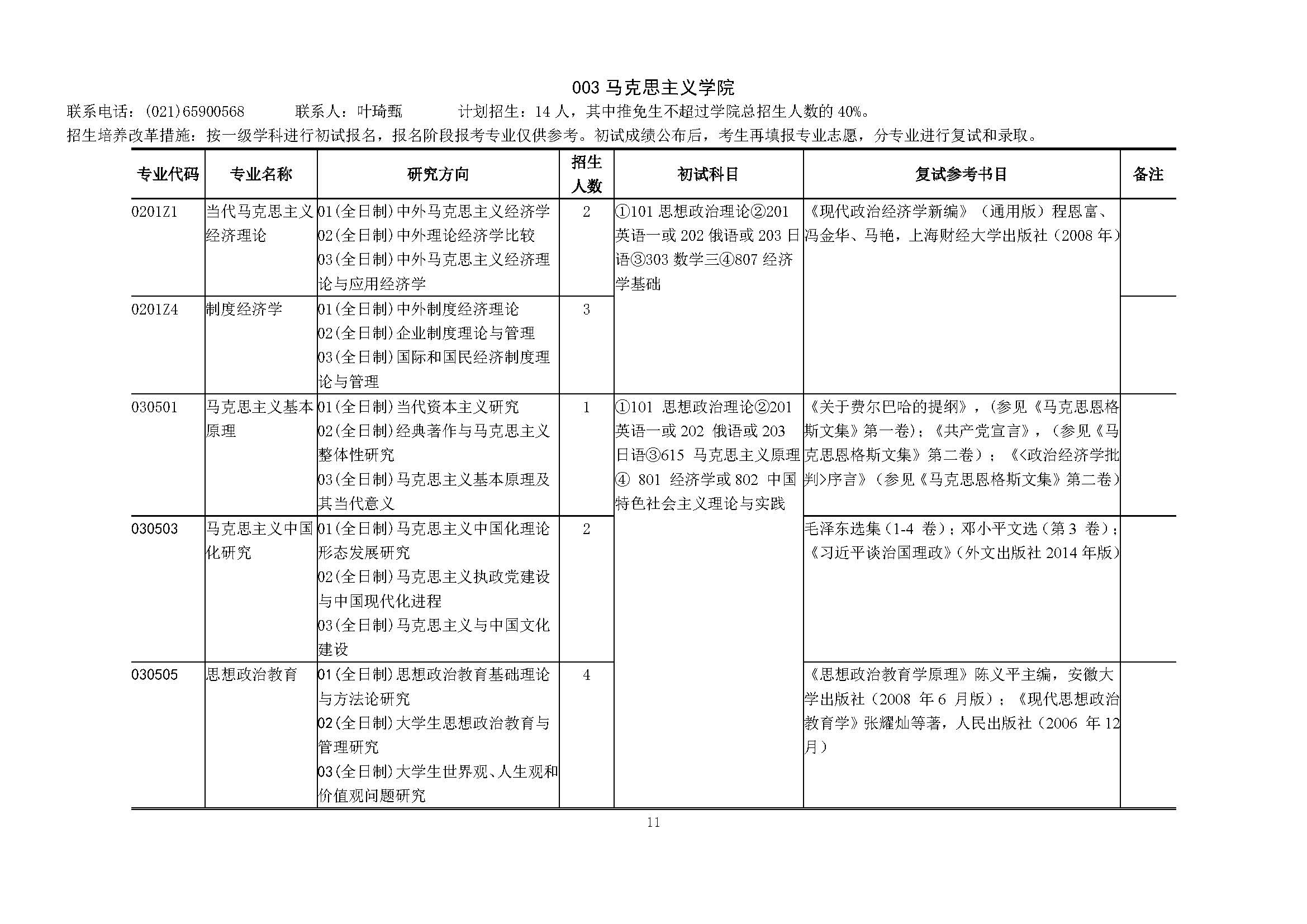 上海财经大学2018硕士研究生招生专业目录