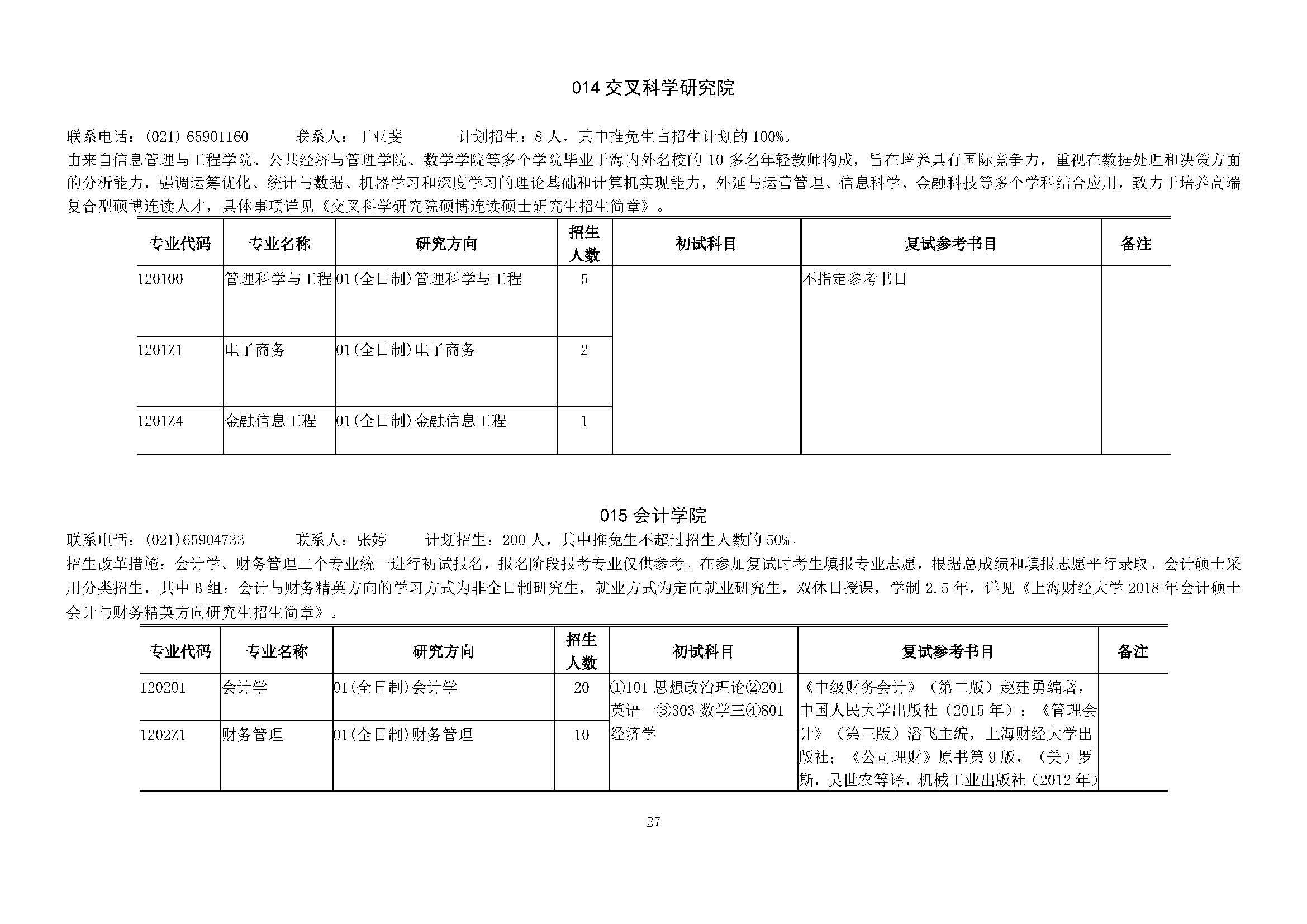 上海财经大学2018年招收攻读硕士学位研究生简章