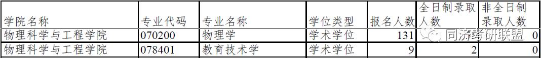 同济大学物理科学与工程学院各专业2017年报录比