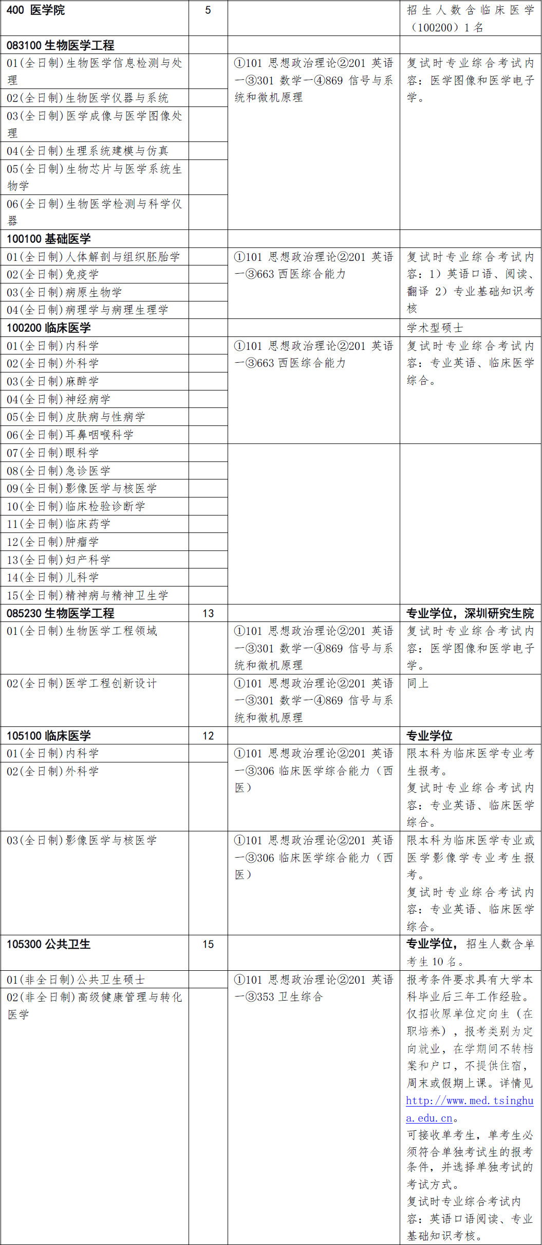 清华大学医学院2018年硕士研究生招生人数