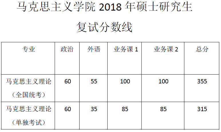 同济大学马克思主义学院2018年硕士研究生复试分数线