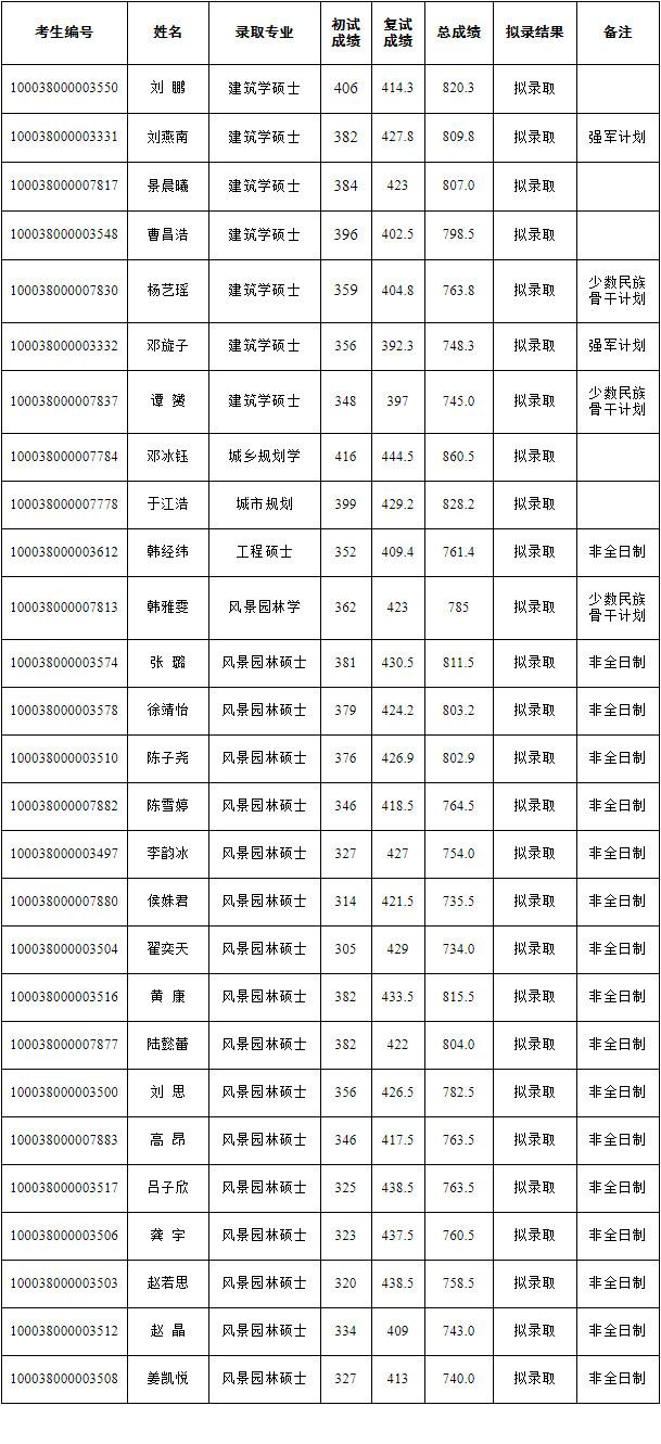 清华大学建筑学院2018年硕士研究生拟录取名单