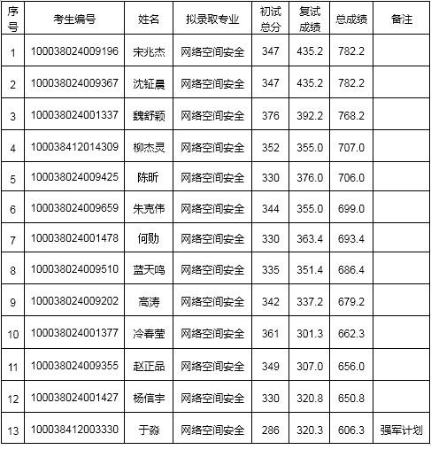 清华大学网络科学与网络空间研究院2018级硕士研究生拟录取名单