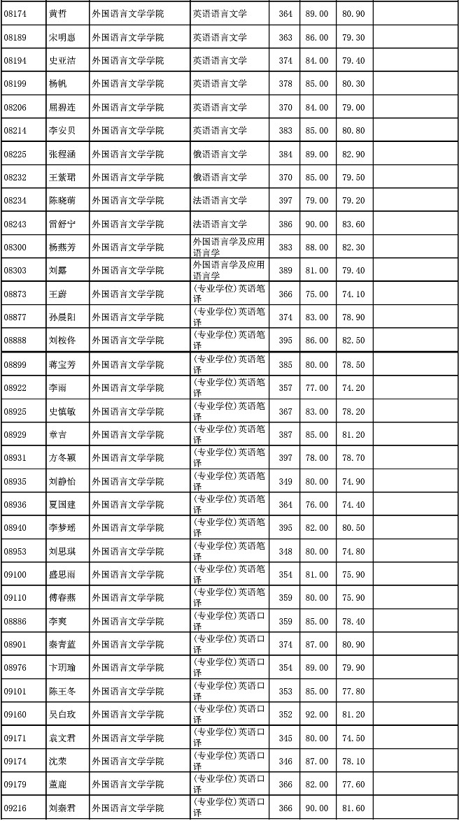 复旦大学外国语言文学学院2018年硕士研究生拟录取名单