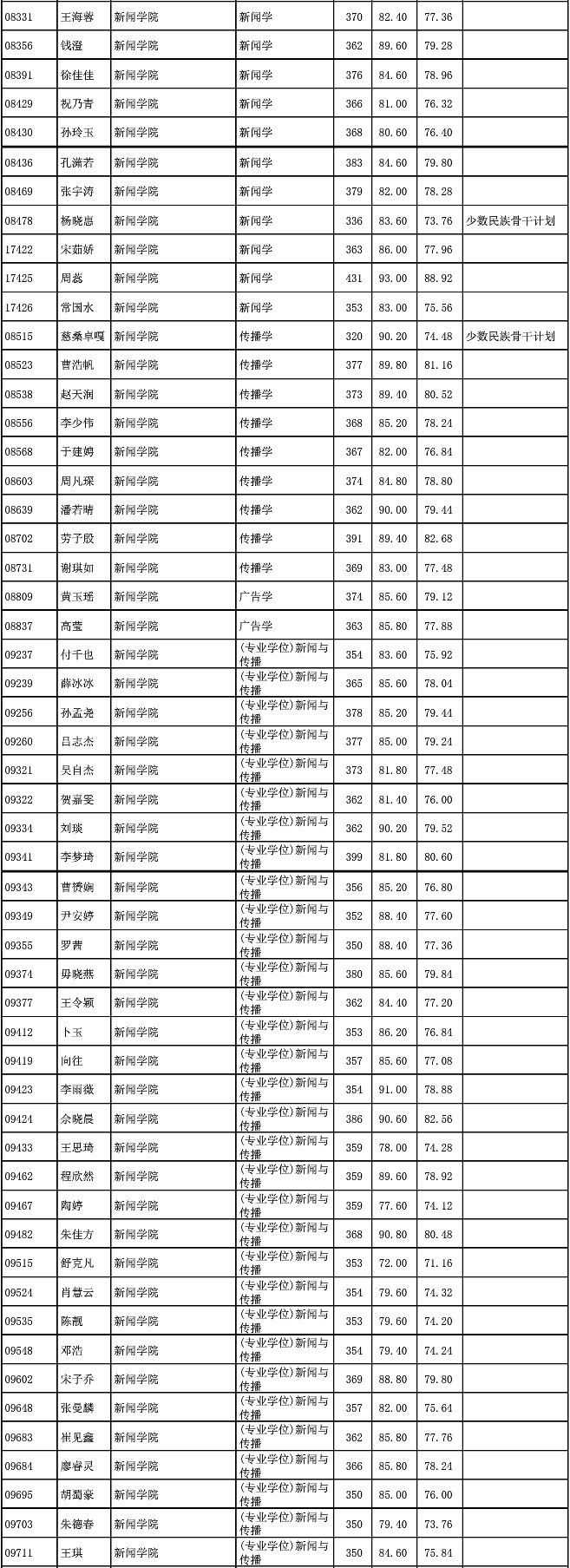 复旦大学新闻学院2018年硕士研究生拟录取名单