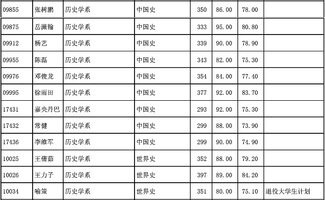复旦大学历史学系2018年硕士研究生拟录取名单