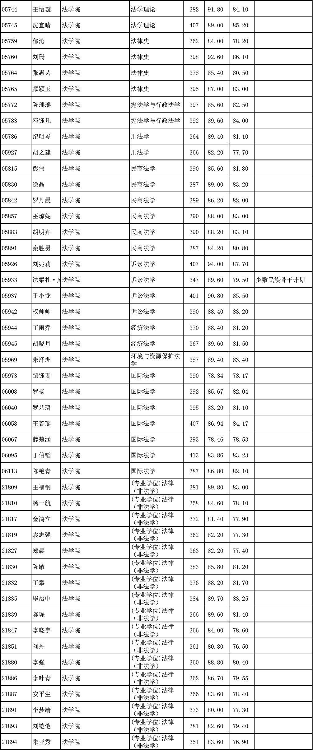 复旦大学法学院2018年硕士研究生拟录取名单