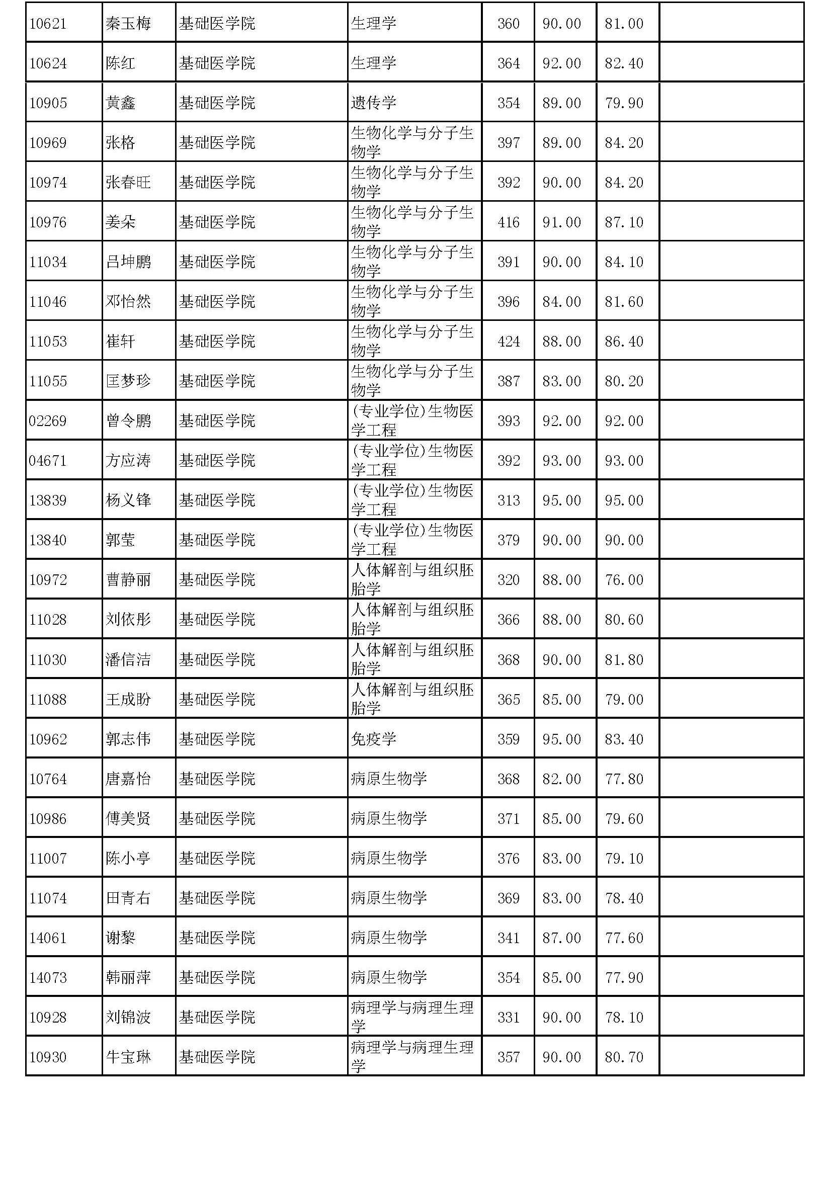 复旦大学基础医学院2018年硕士研究生拟录取名单