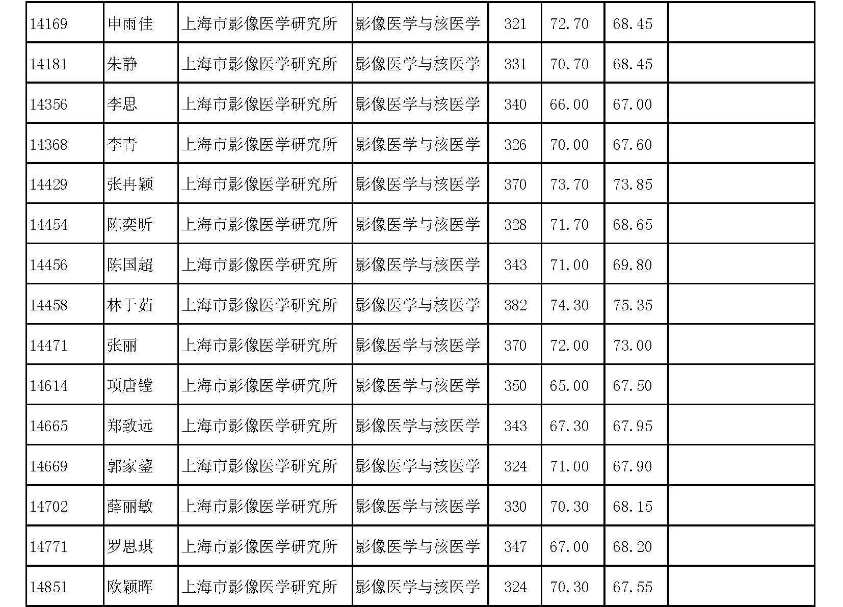 复旦大学上海市影像医学研究所2018年硕士研究生拟录取名单