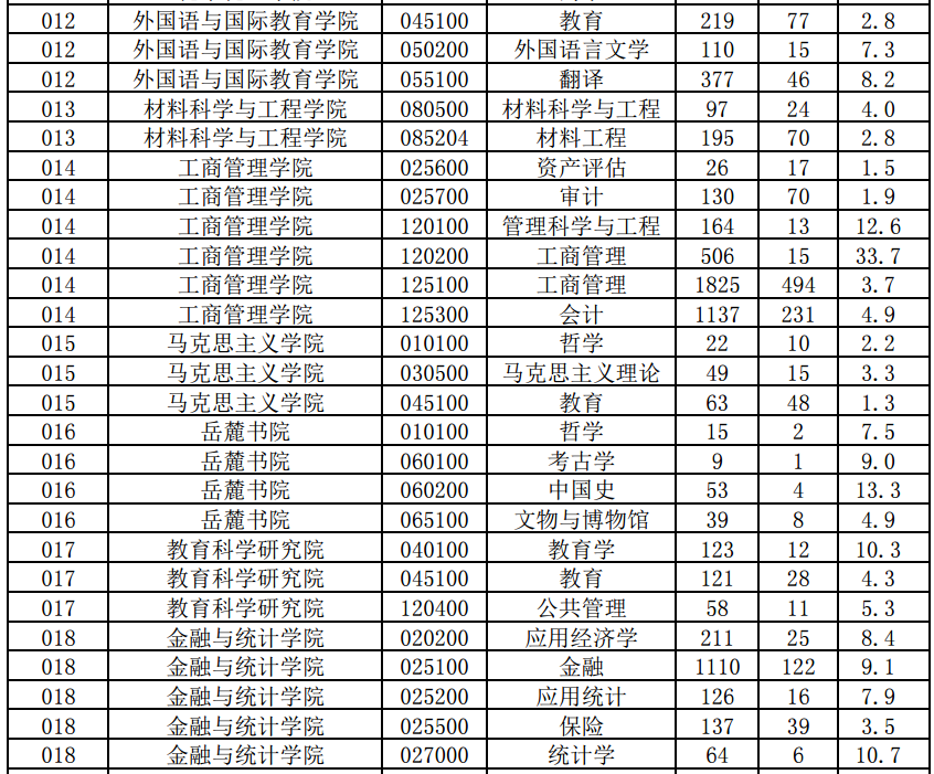 湖南大学2018硕士研究生各专业报录比!