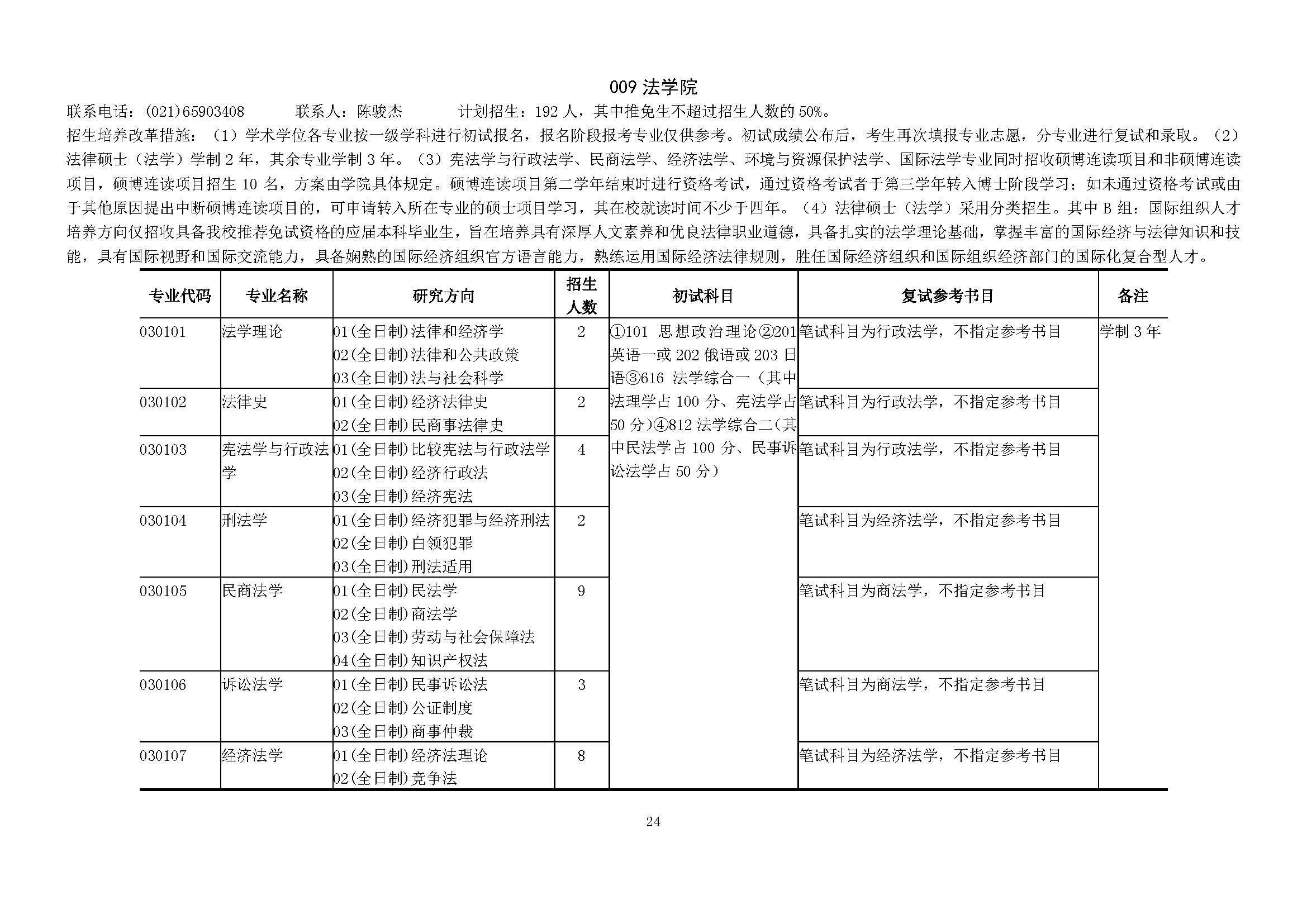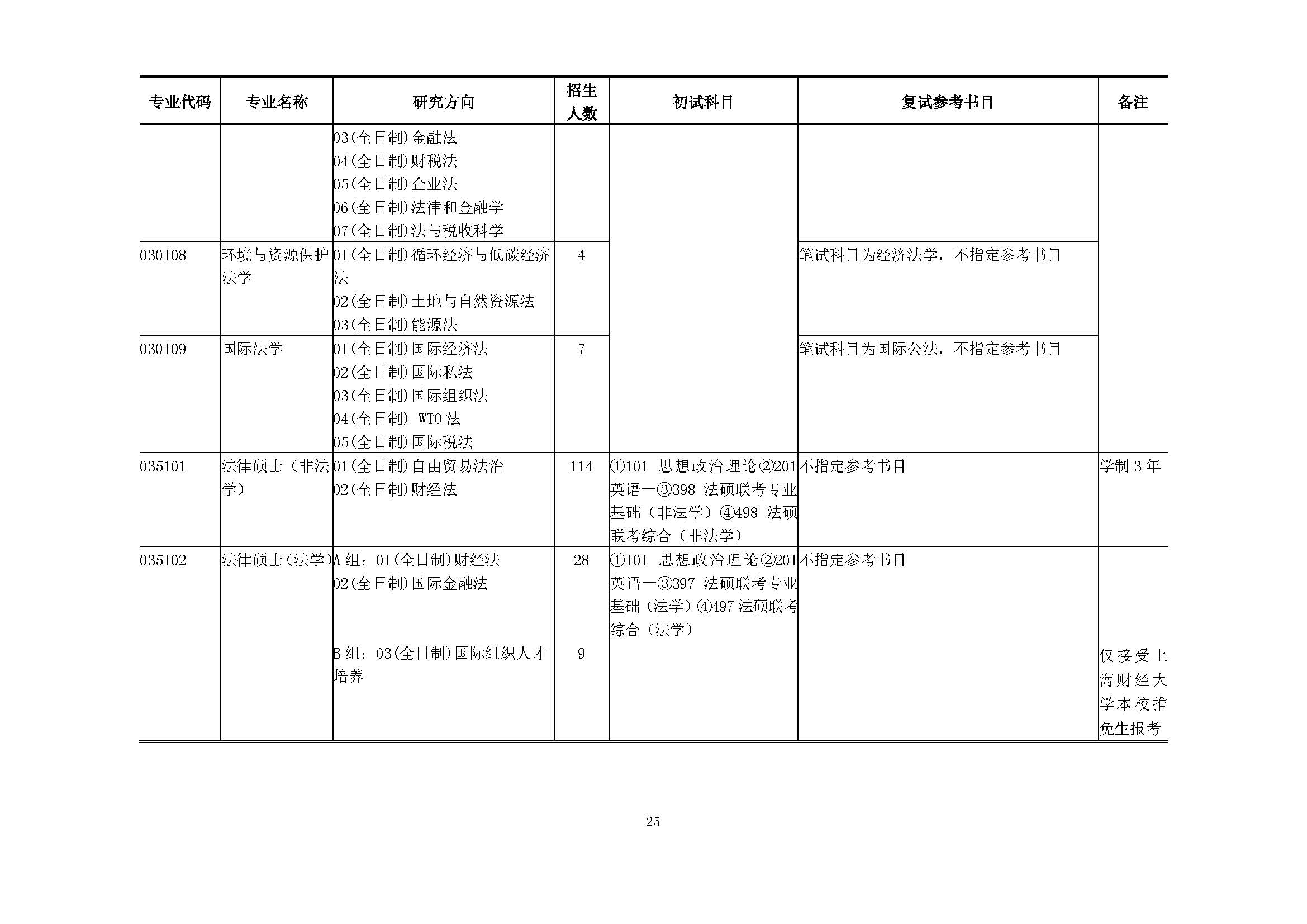 上海财经大学2019年法学院硕士研究生招生专业目录、招生人数