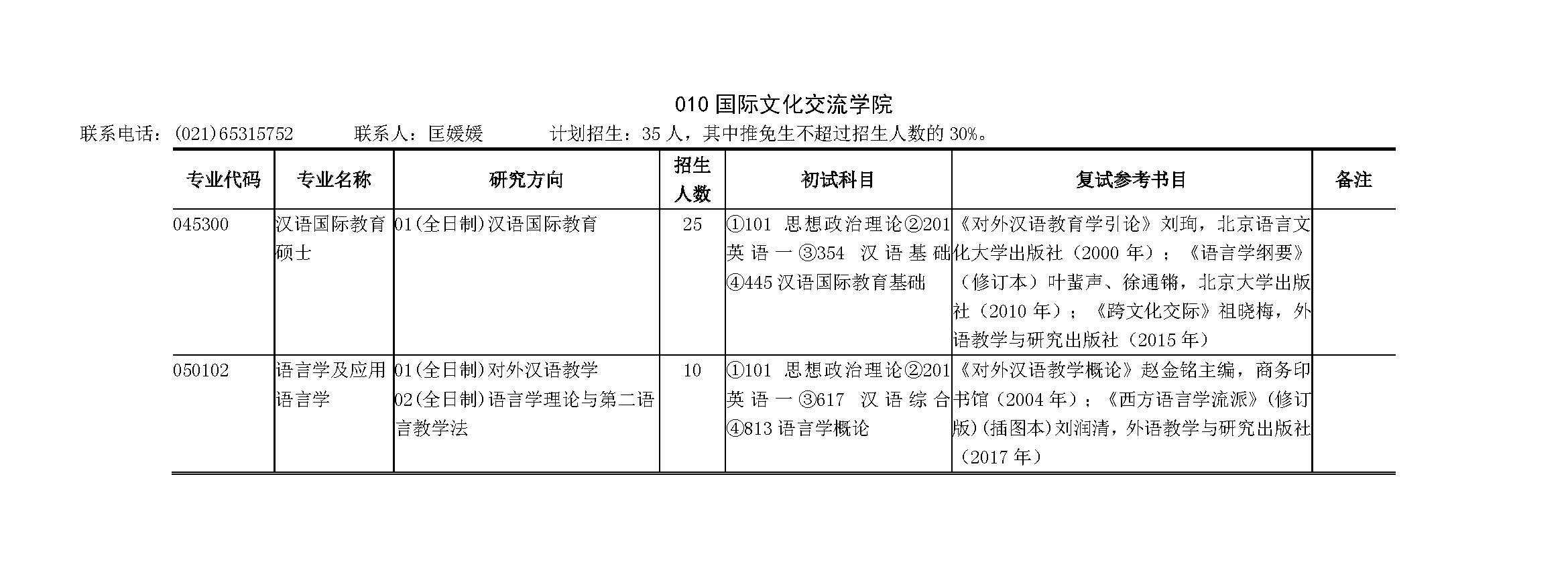 上海财经大学2019年国际文化交流学院硕士研究生招生专业目录、招生人数