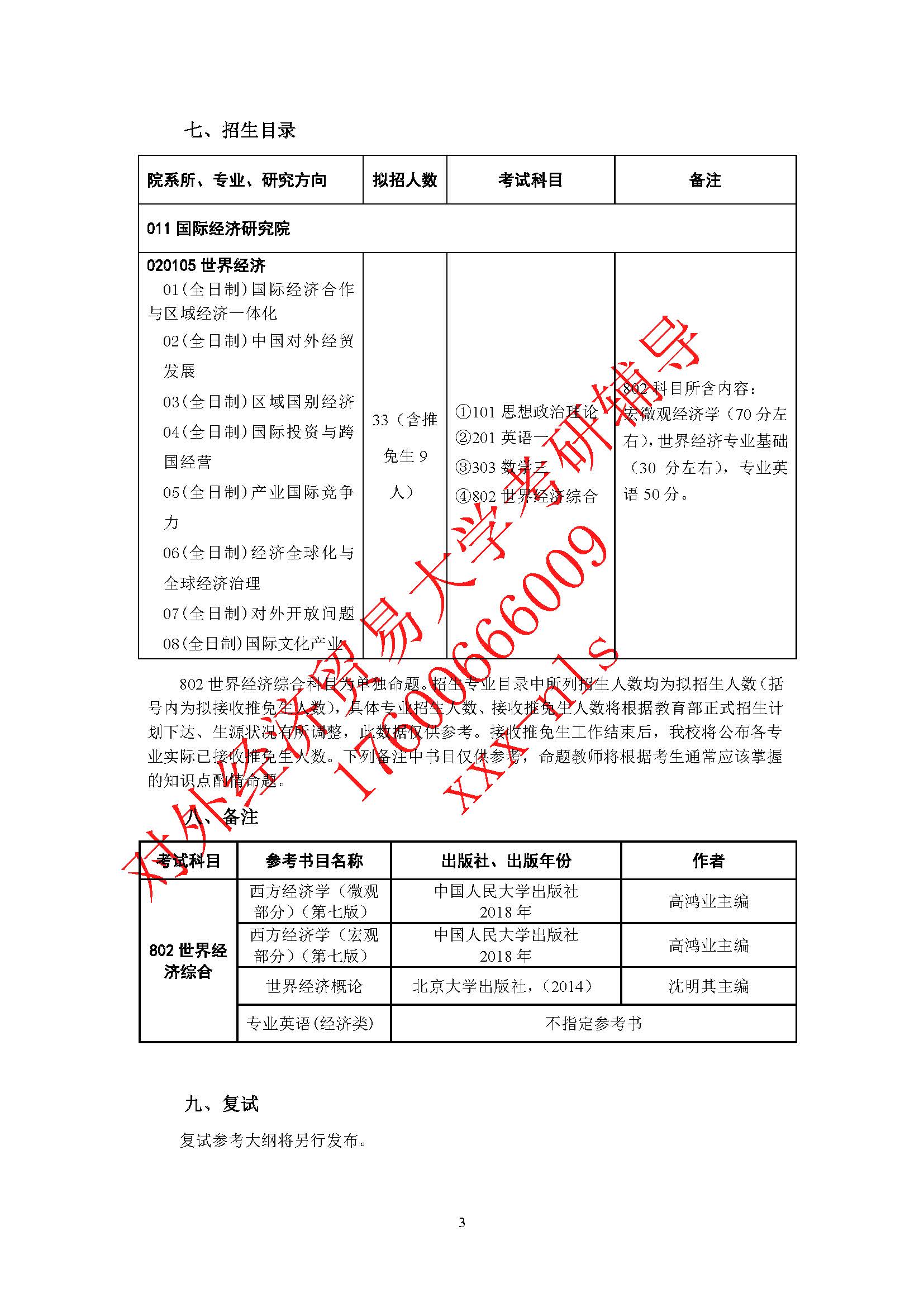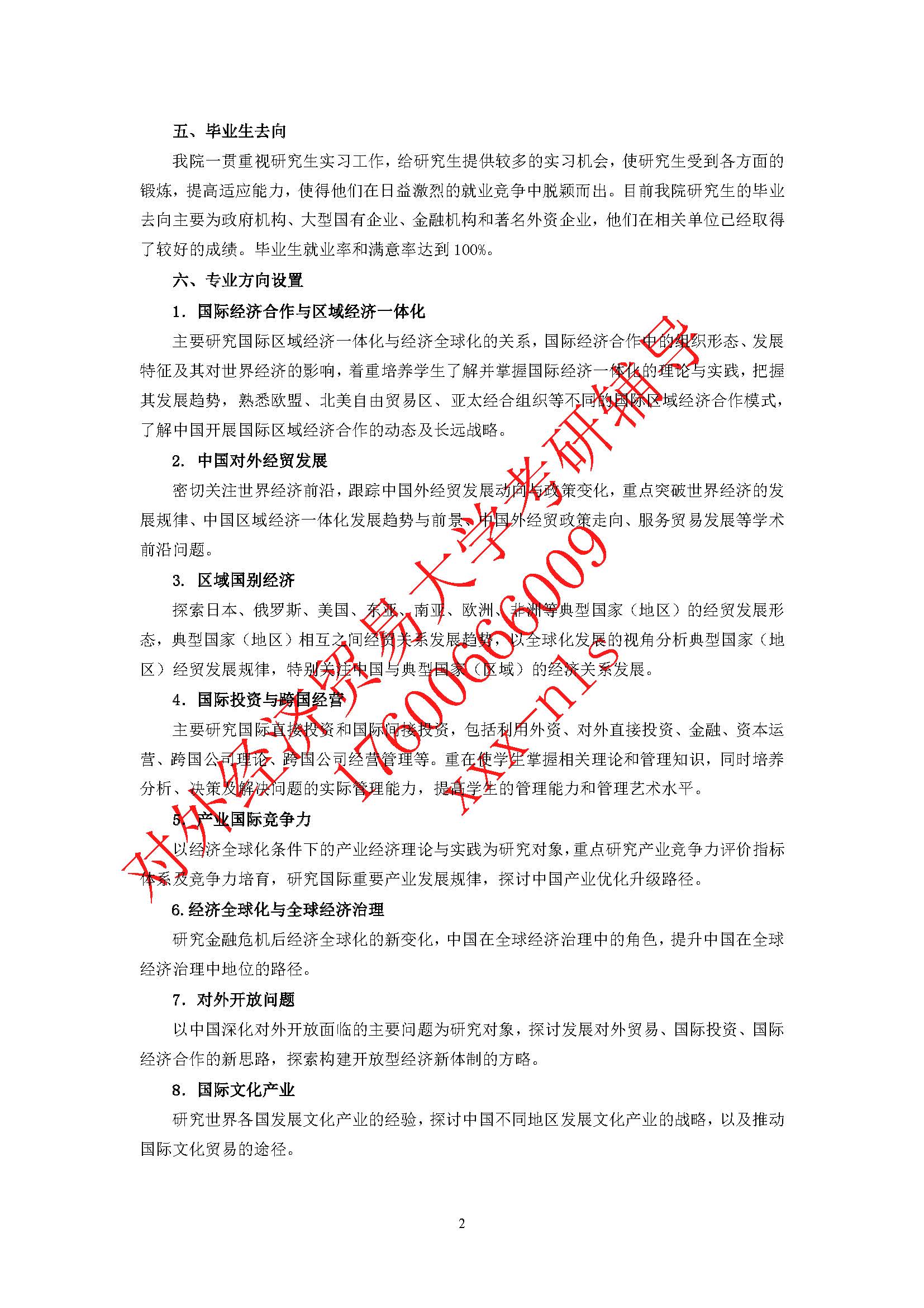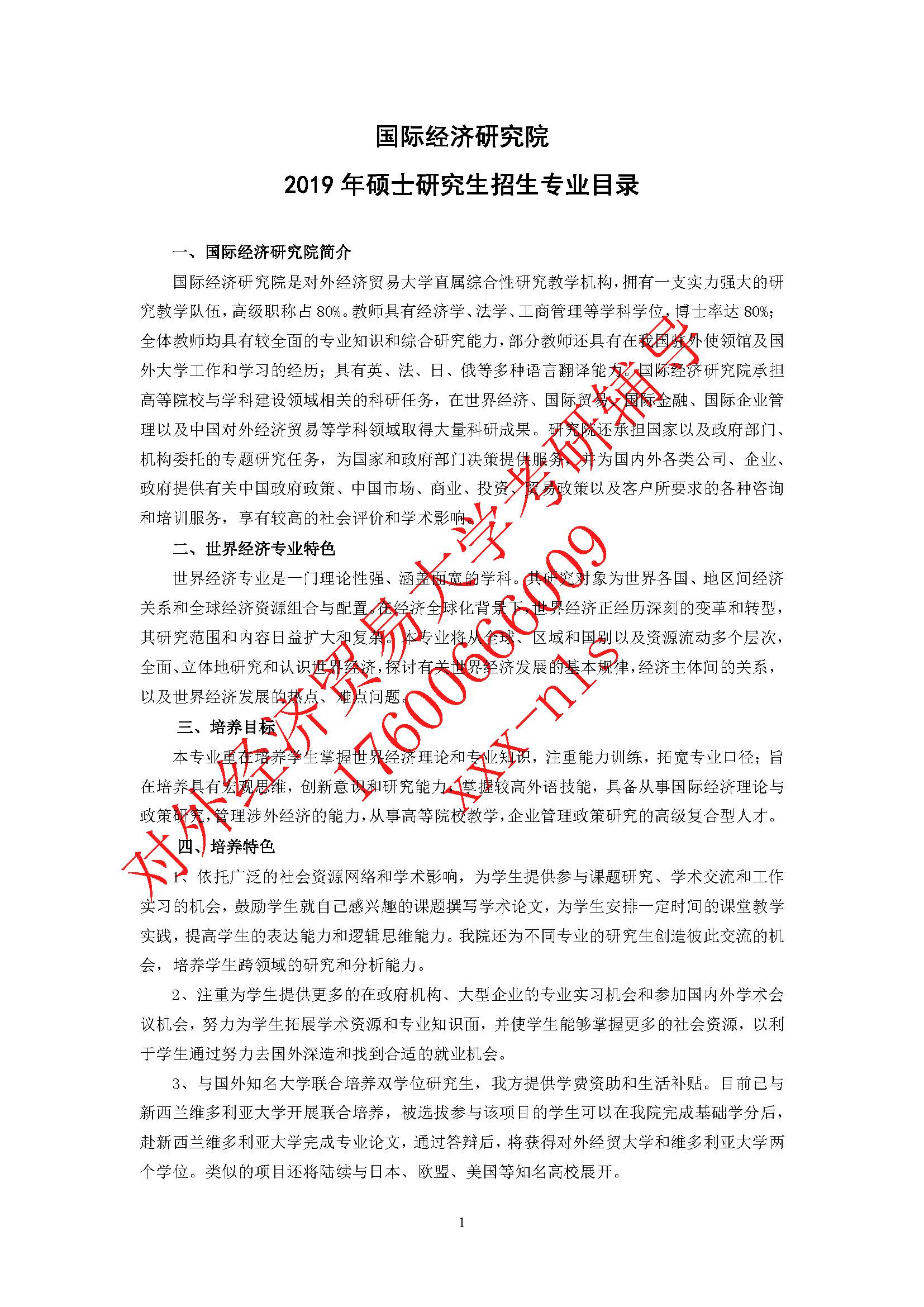 对外经济贸易大学国际经济研究院2019年硕士研究生招生专业目录