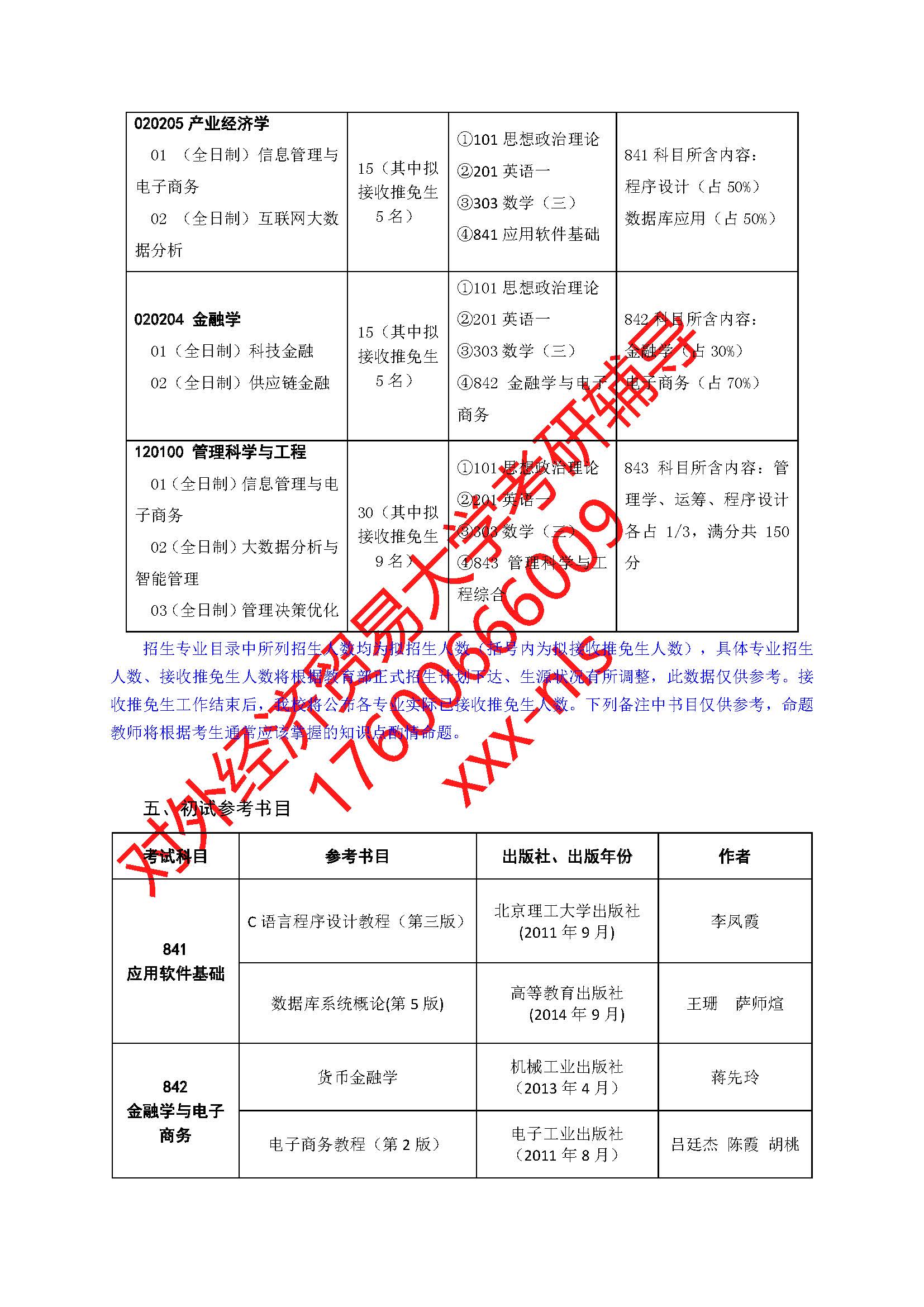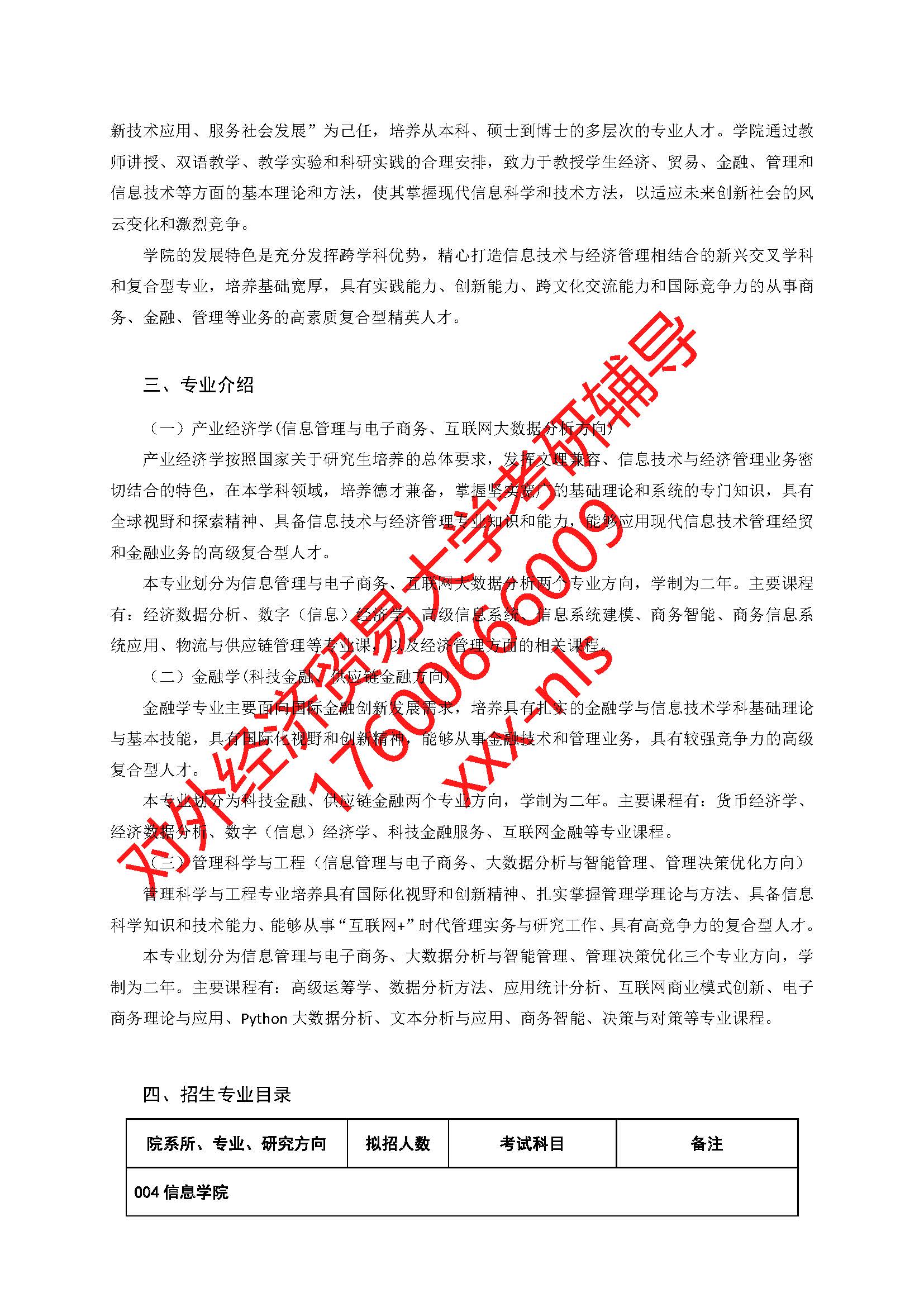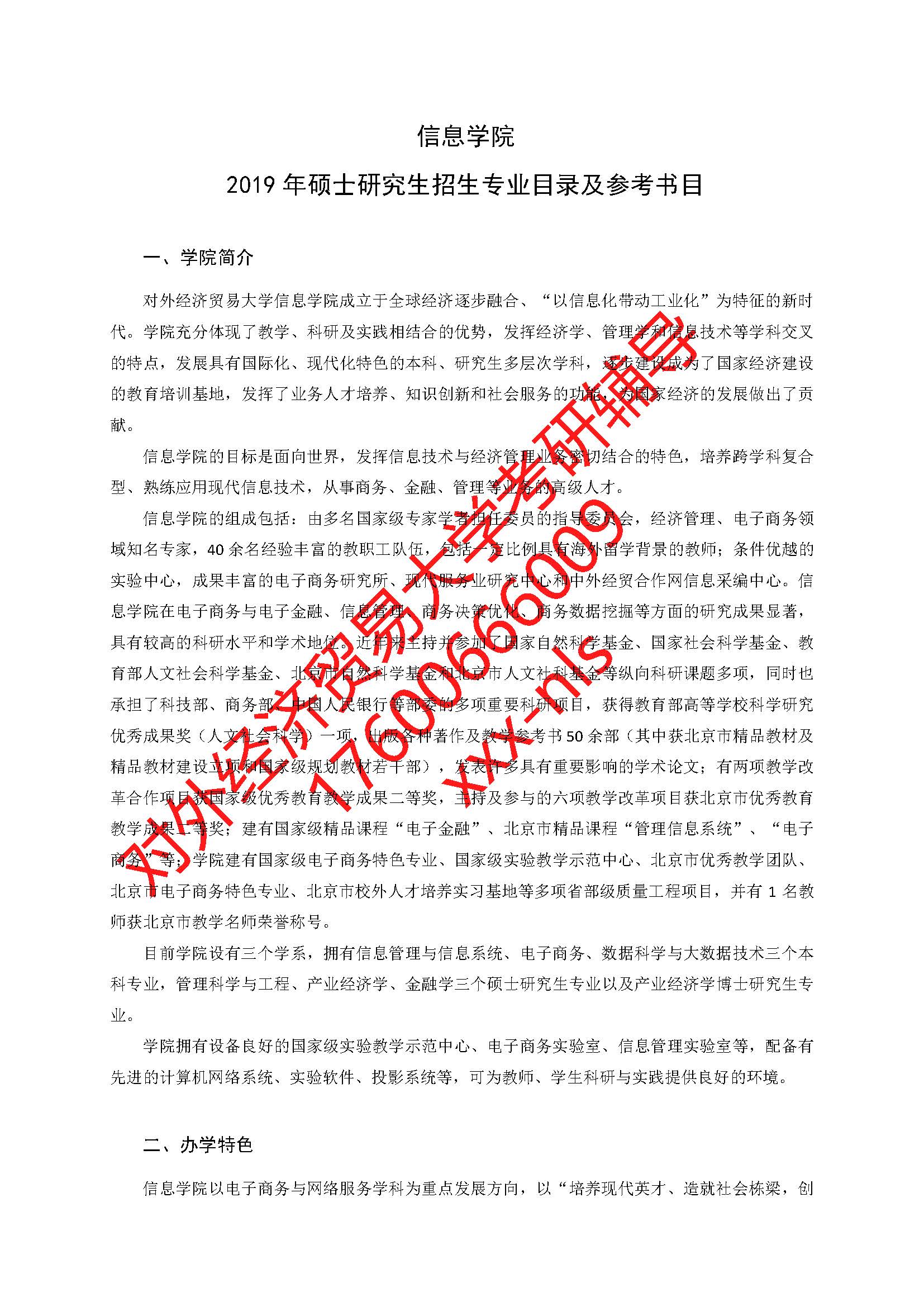 对外经济贸易大学信息学院2019年硕士研究生招生专业目录
