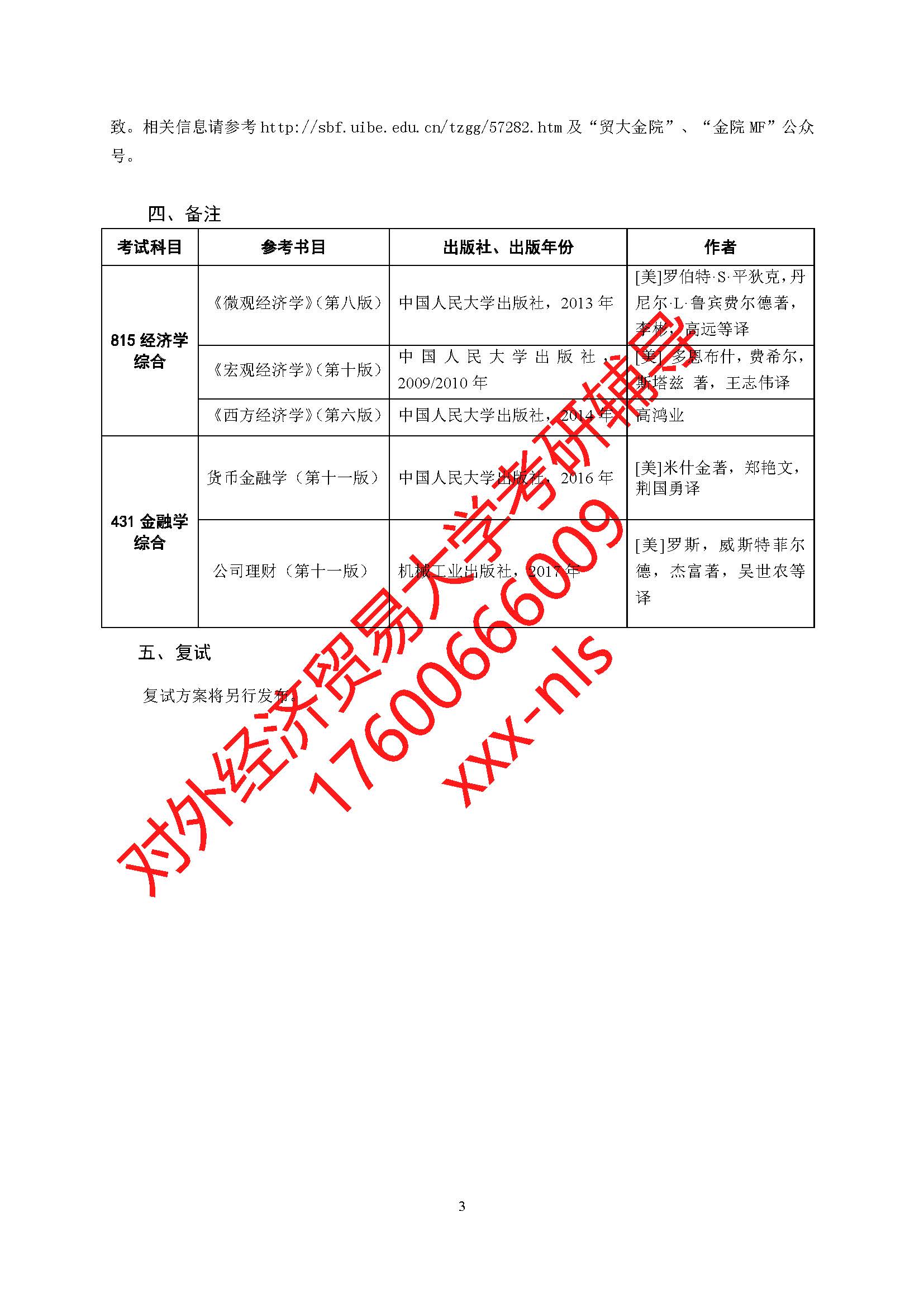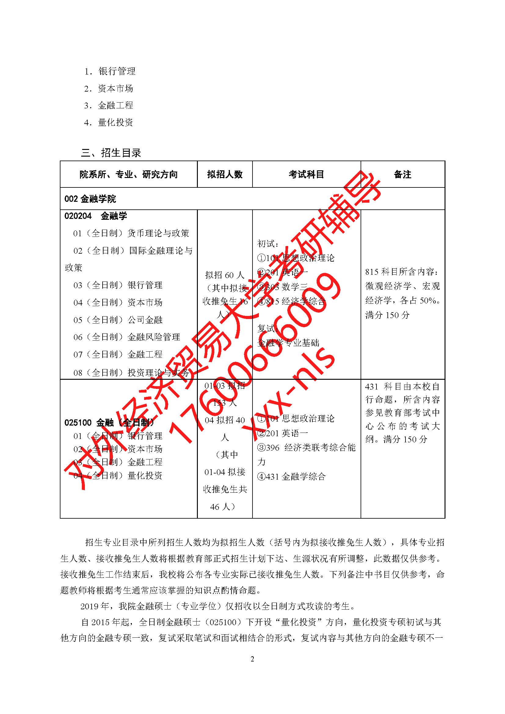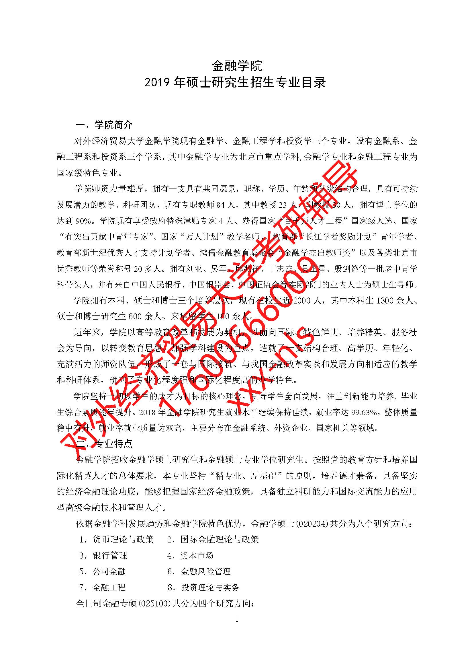 对外经济贸易大学金融学院2019年硕士研究生招生专业目录