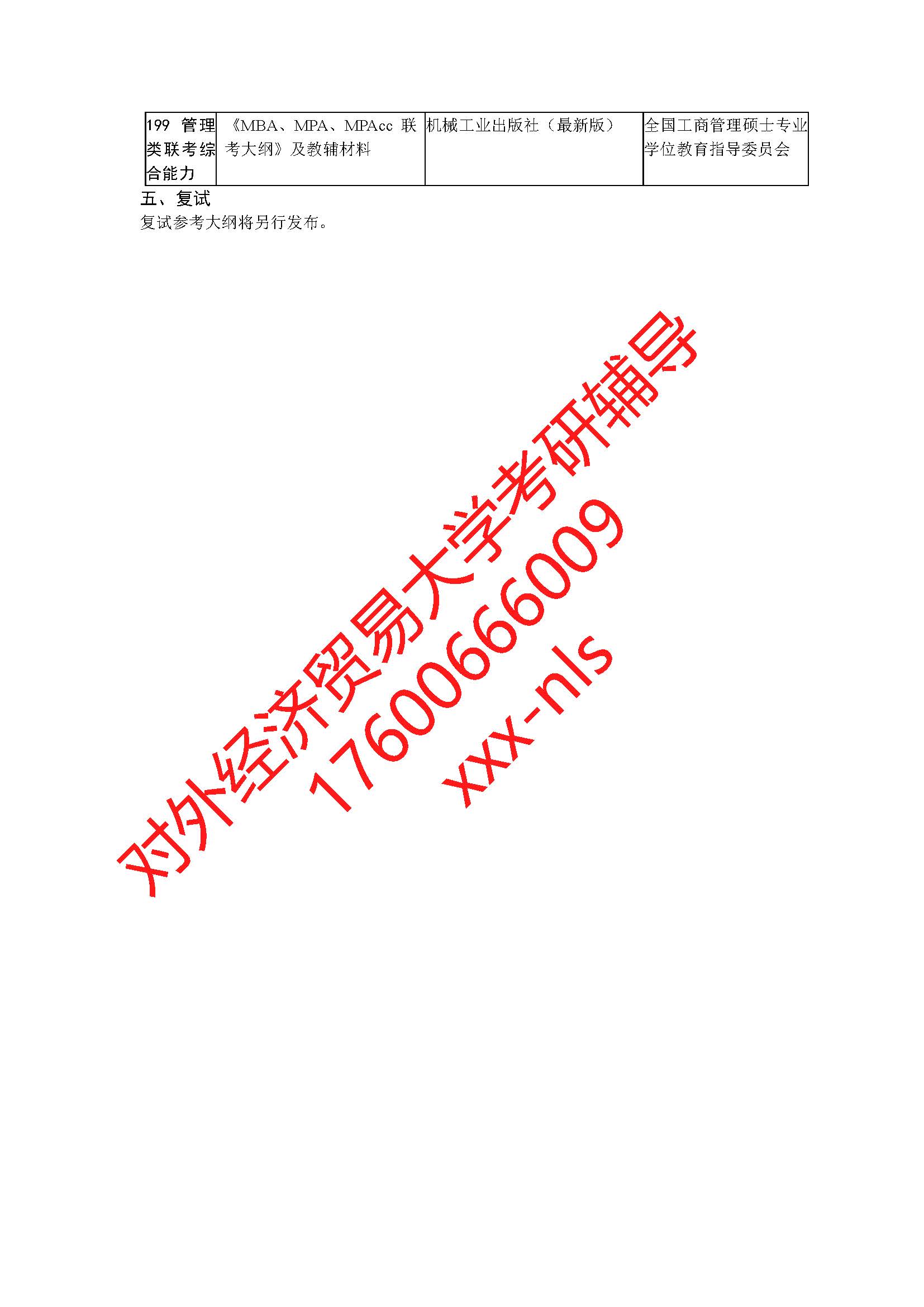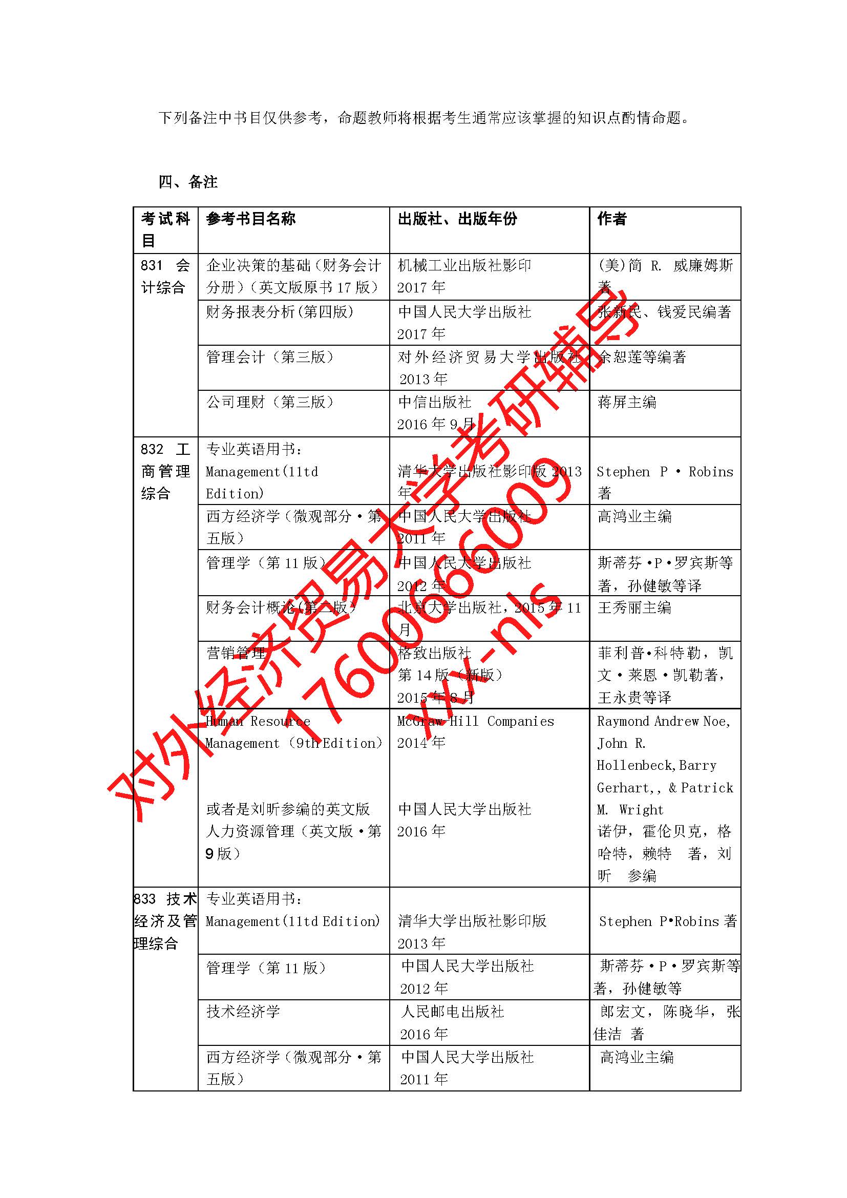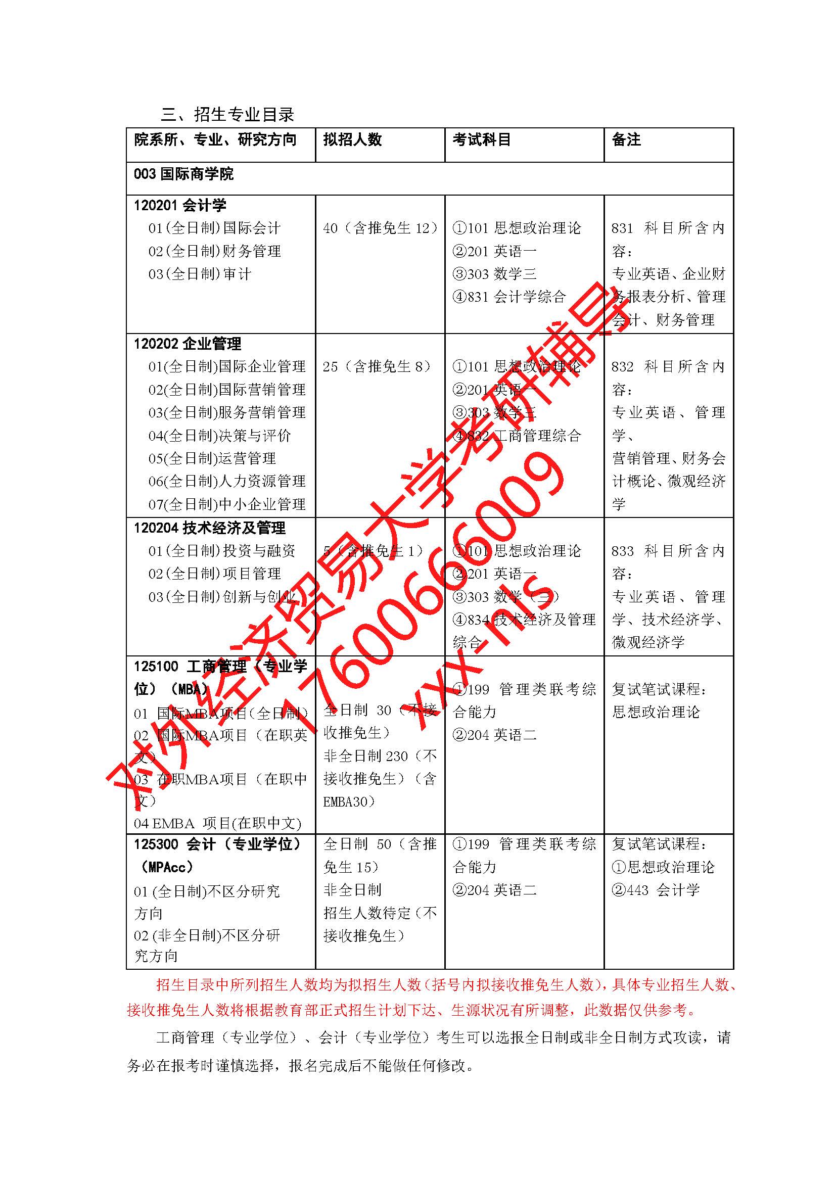 对外经济贸易大学国际商学院2019年硕士研究生招生专业目录