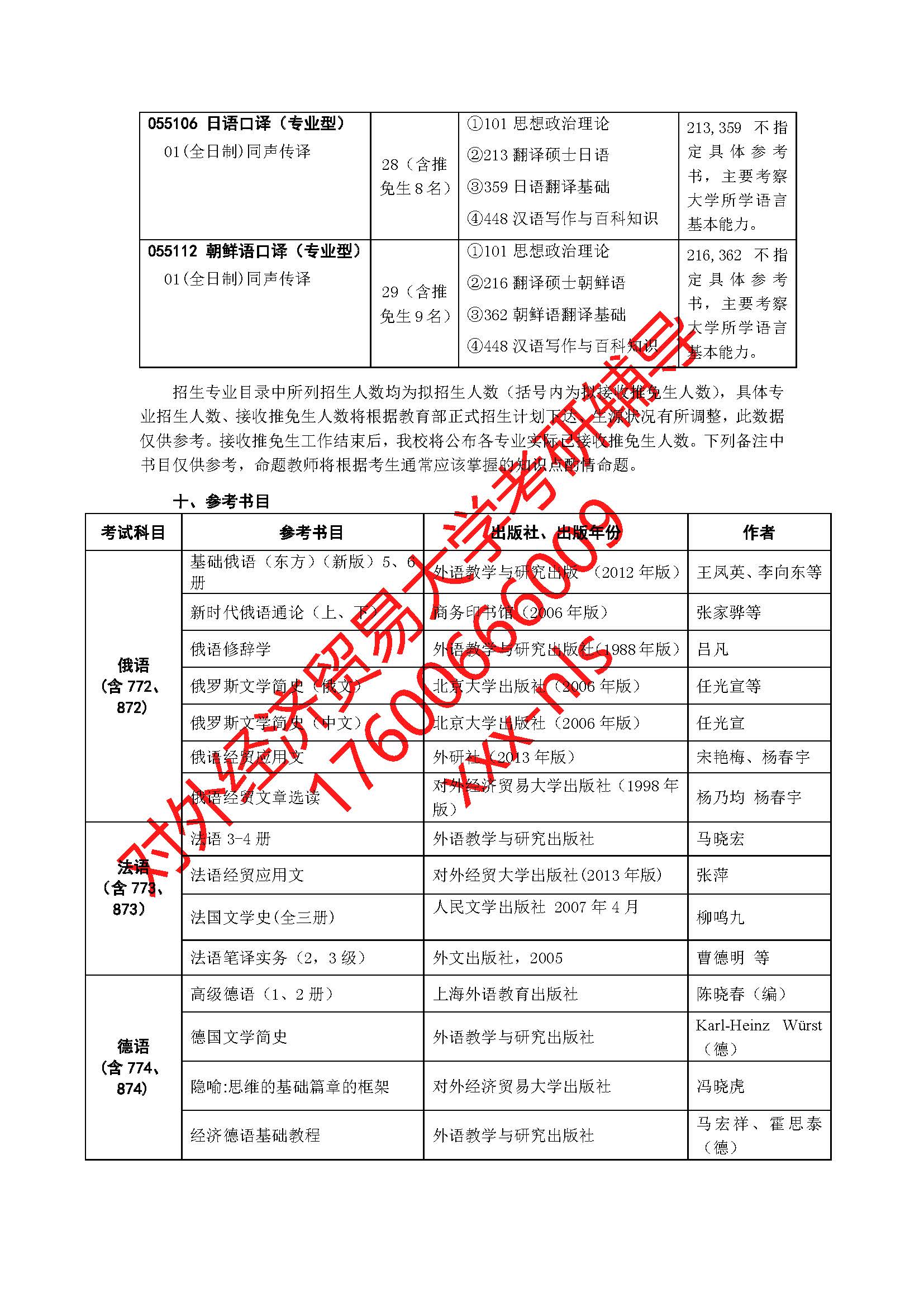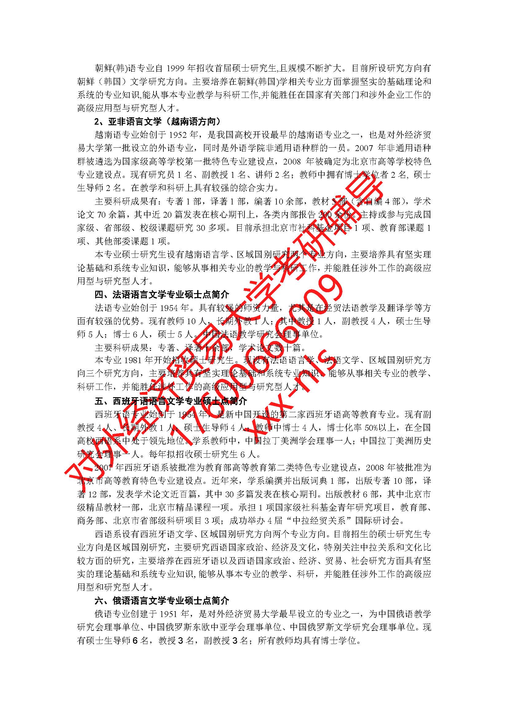 对外经济贸易大学外语学院2019年硕士研究生招生专业目录