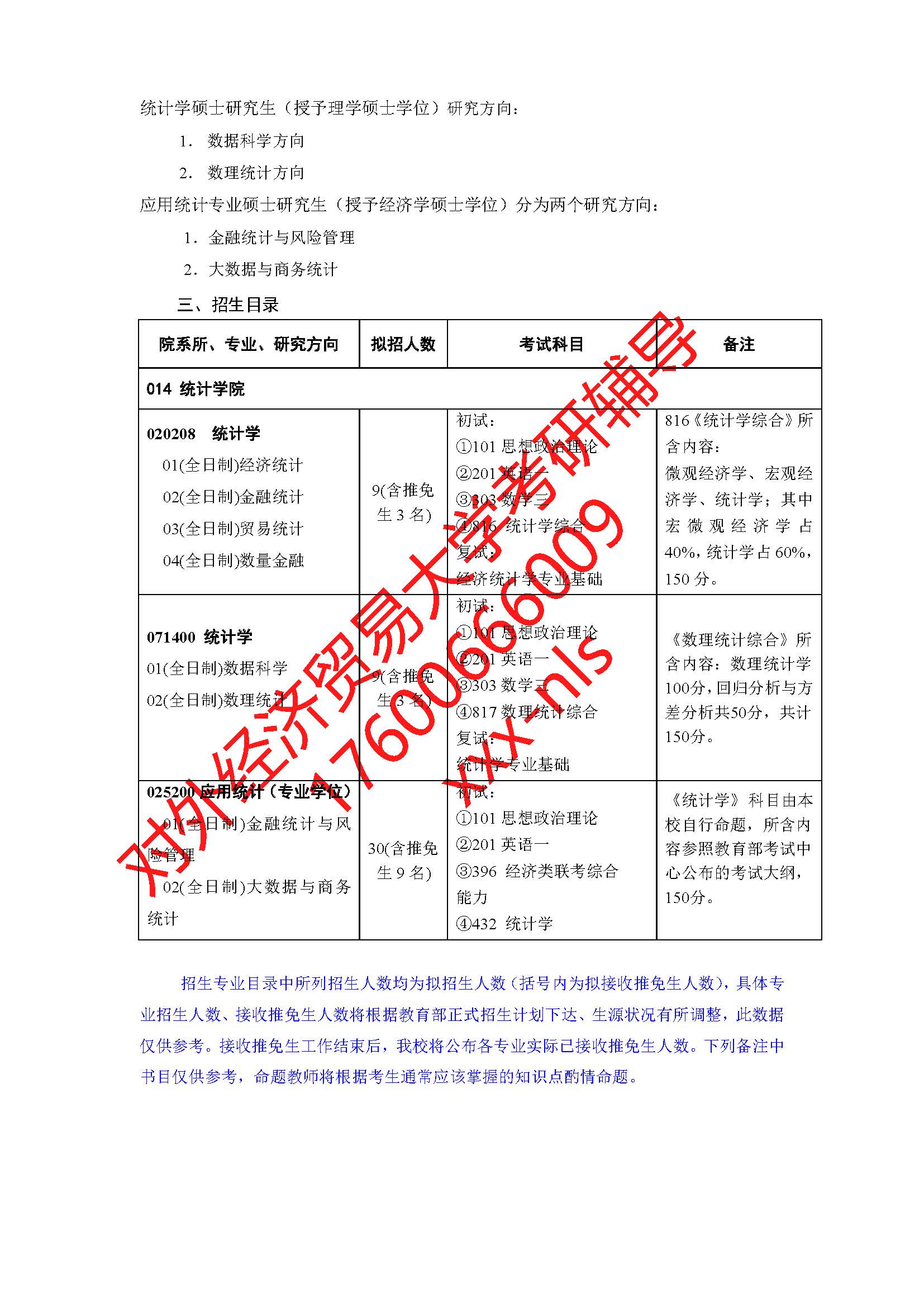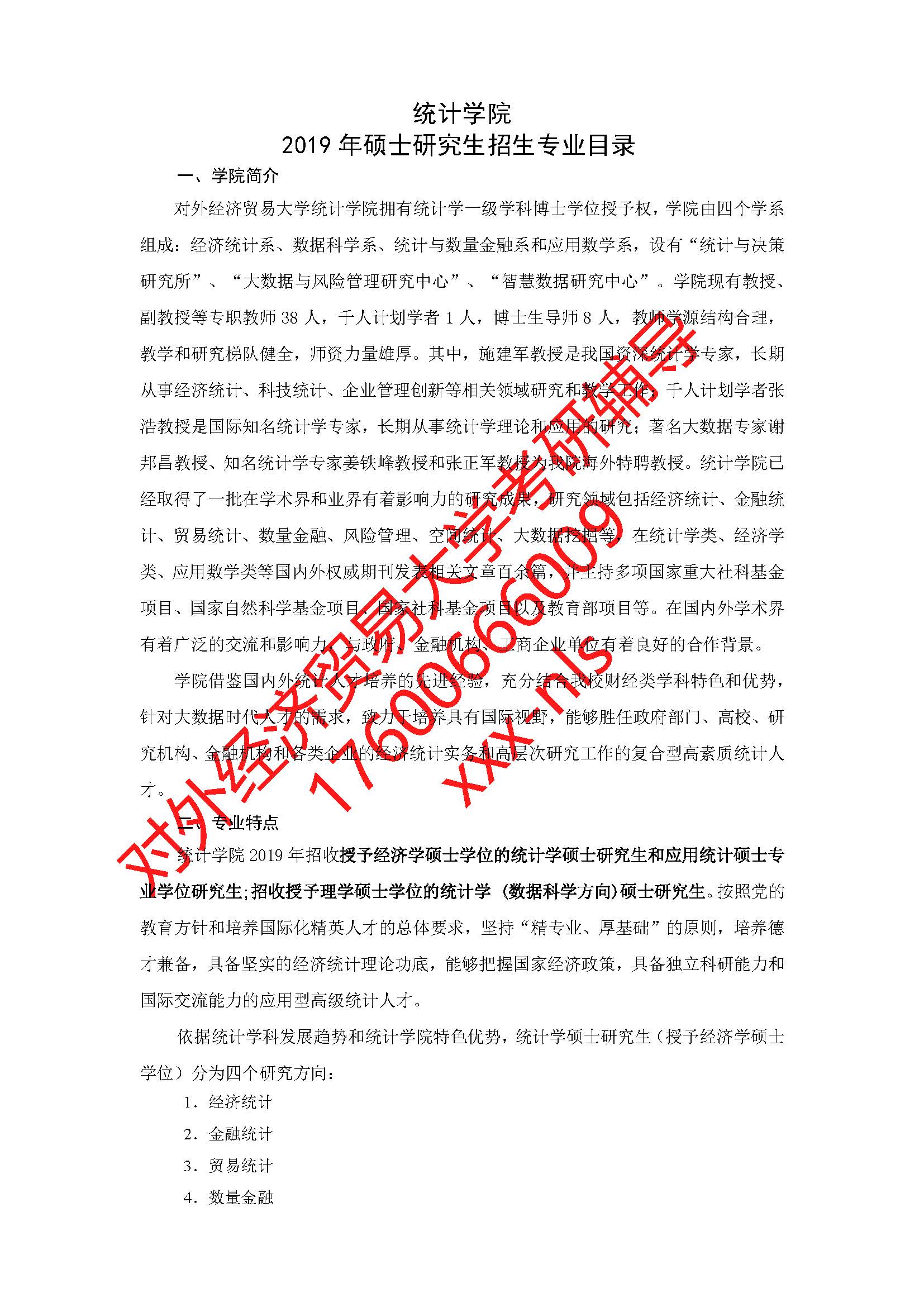 对外经济贸易大学统计学院2019年硕士研究生招生专业目录