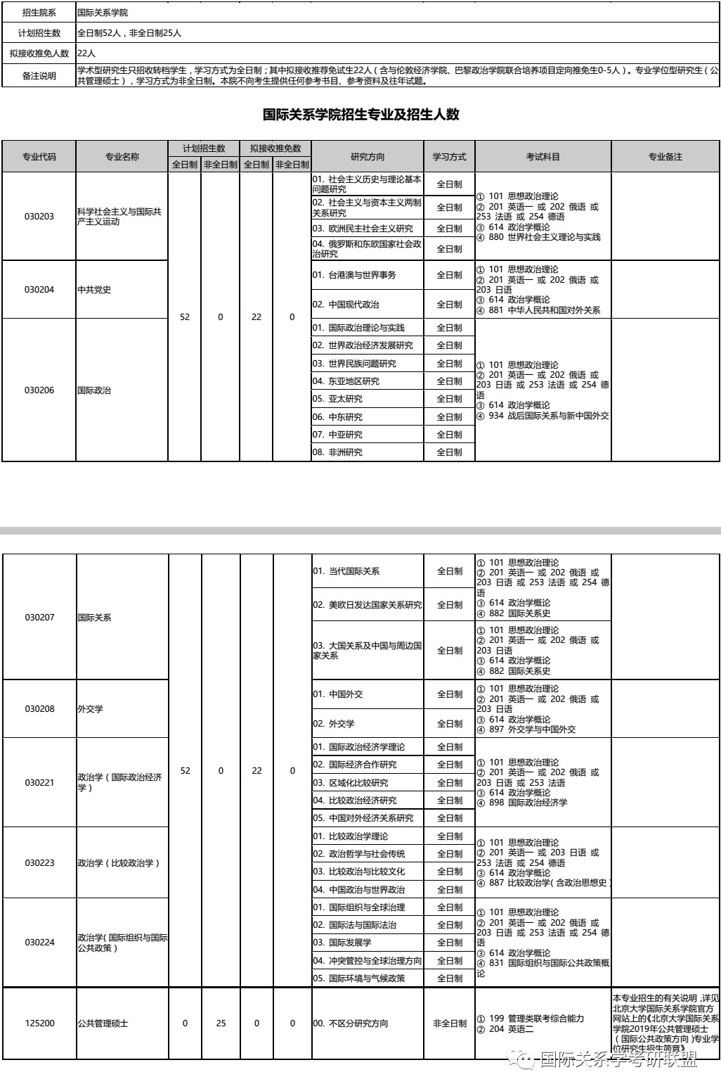北京大学国际关系学院2019年硕士研究生招生专业目录