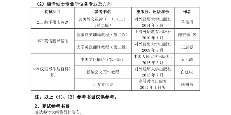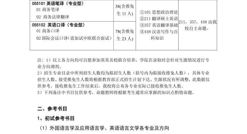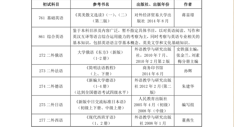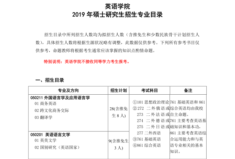 对外经济贸易大学英语学院2019年硕士研究生招生专业目录