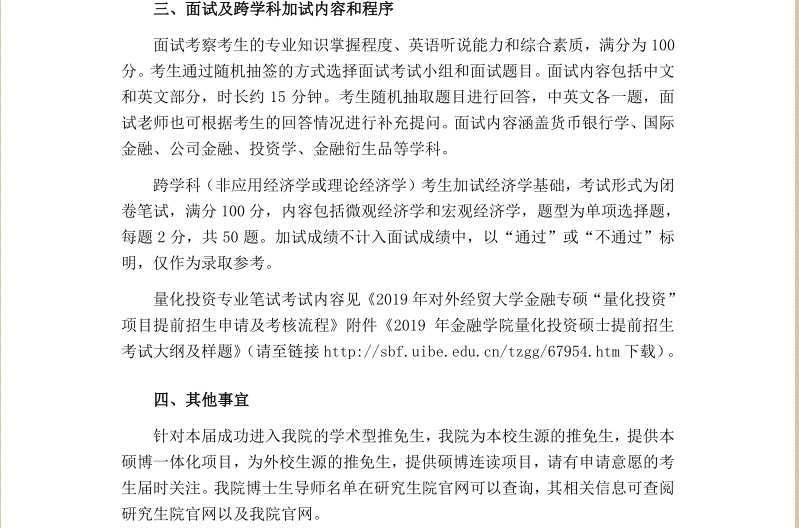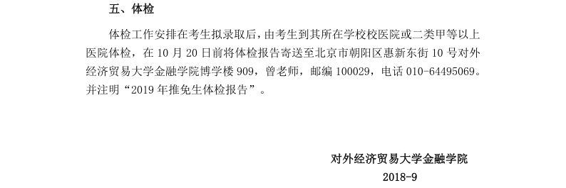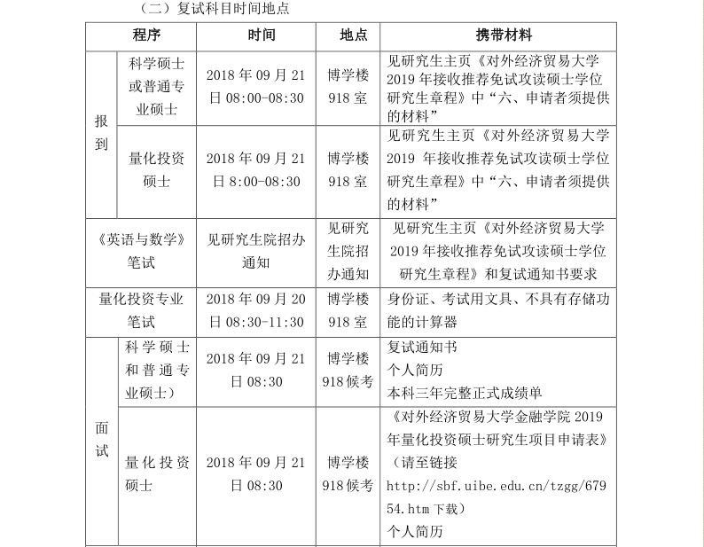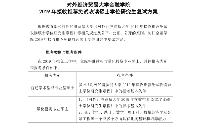 对外经济贸易大学金融学院2019年接收推荐免试生复试工作方案