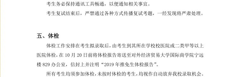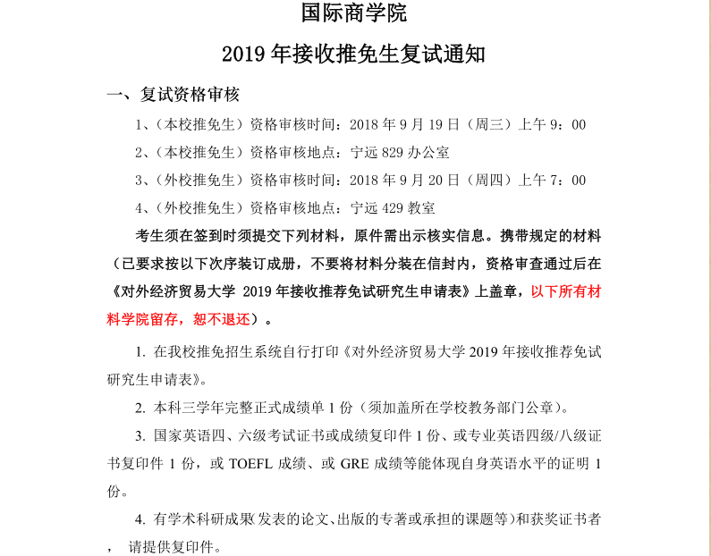对外经济贸易大学国际商学院2019年接收推荐免试生复试工作方案