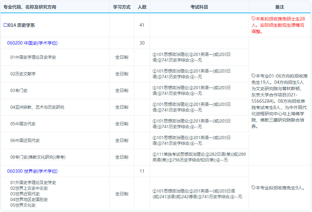 2019年复旦大学历史学系考研招生专业、招生人数、考试科目