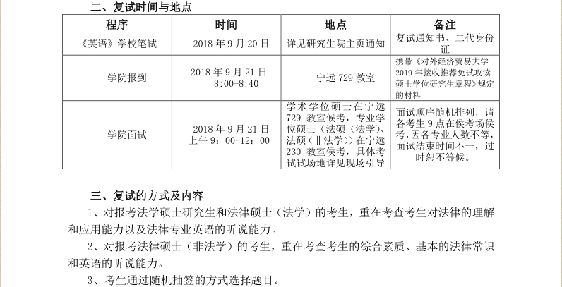 对外经济贸易大学法学院2019年接收推荐免试生复试工作方案