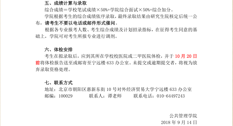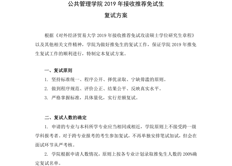 对外经济贸易大学公共管理学院2019年接收推荐免试生复试工作方案