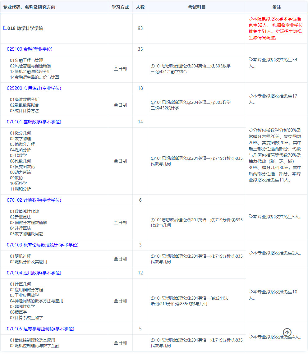 2019年复旦大学数学科学学院考研招生专业、招生人数、考试科目