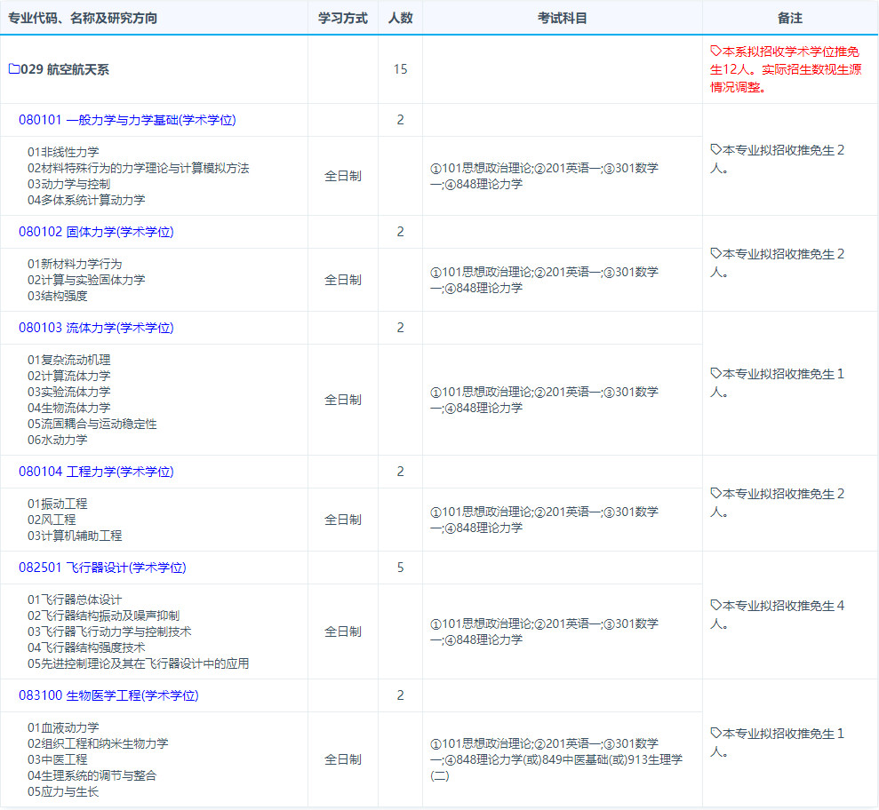 2019年复旦大学航空航天系考研招生专业、招生人数、考试科目