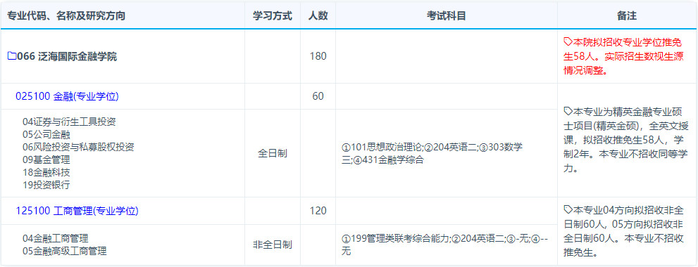 2019年复旦大学泛海国际金融学院考研招生专业、招生人数、考试科目