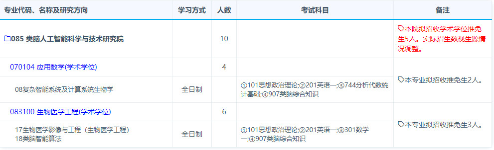 2019年复旦大学类脑人工智能科学与技术研究院考研招生专业、招生人数、考试科目