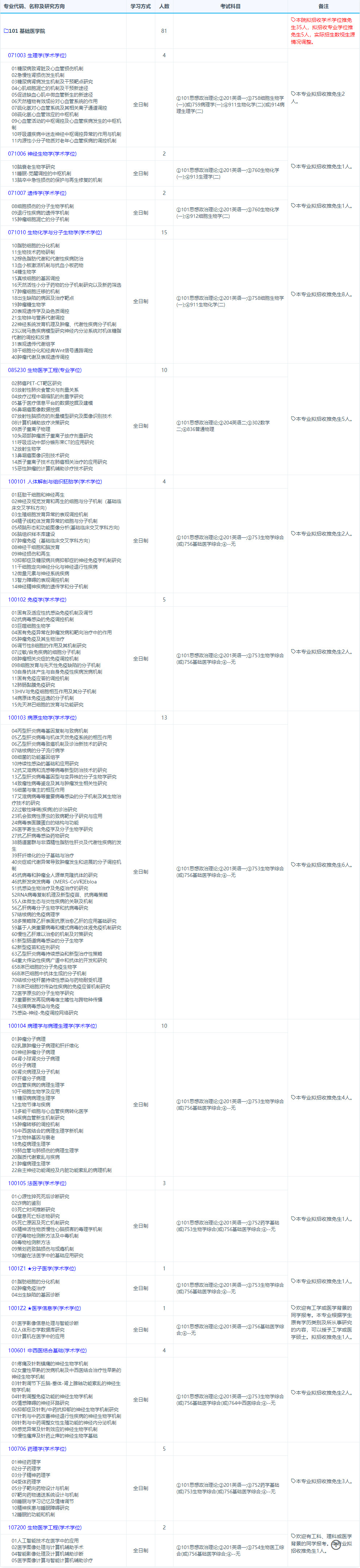 2019年复旦大学基础医学院考研招生专业、招生人数、考试科目