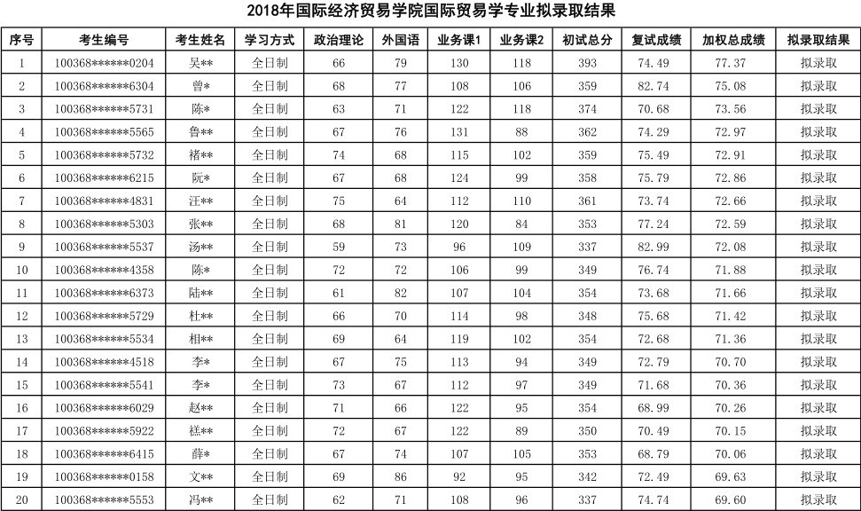 五、对外经济贸易大学国际经济贸易学院国际贸易学专业研究生拟录取情况(2018年名单):