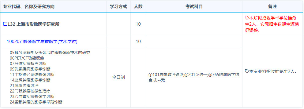 2019年复旦大学上海市影像医学研究所考研招生专业、招生人数、考试科目