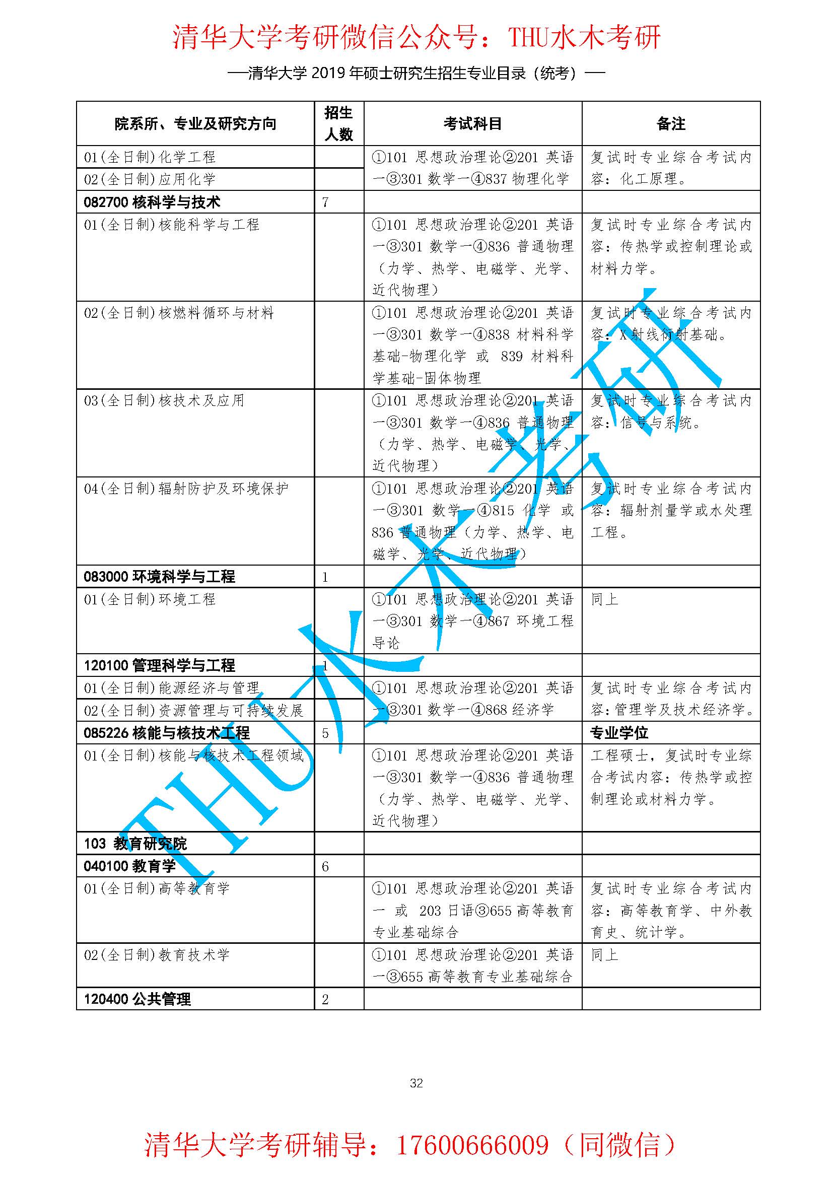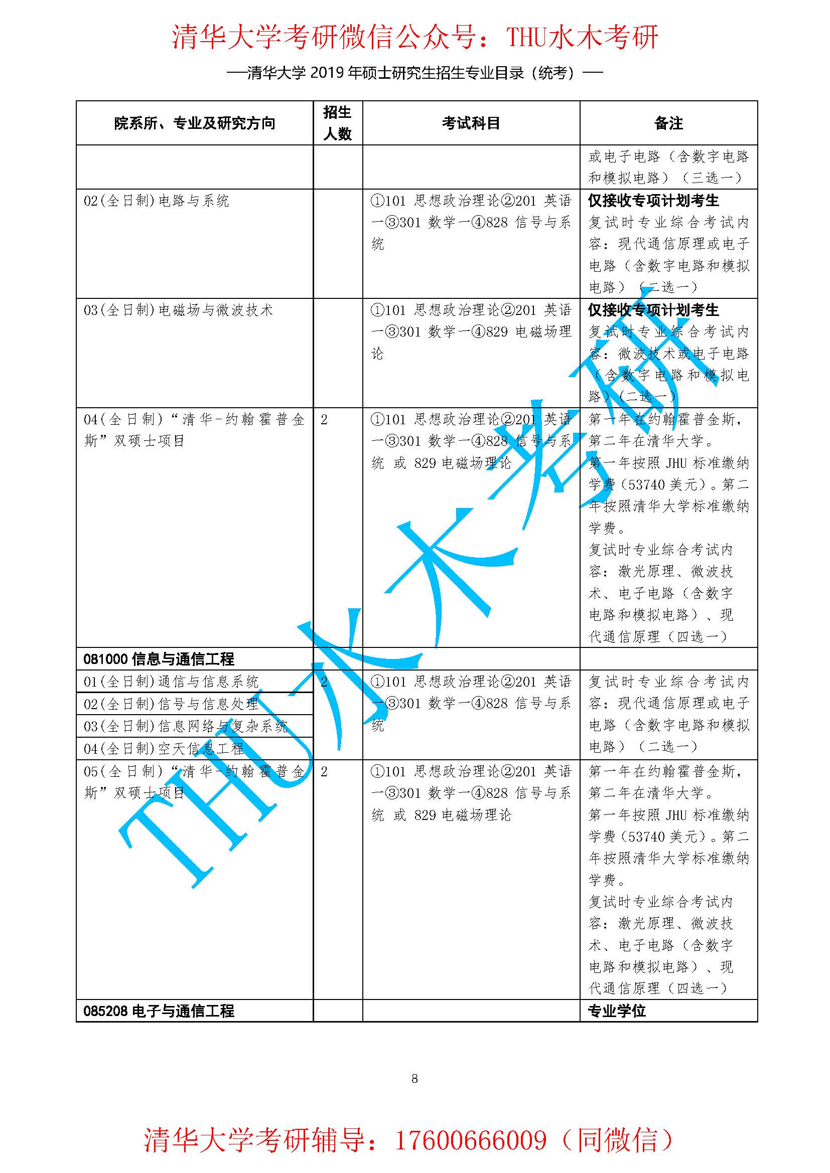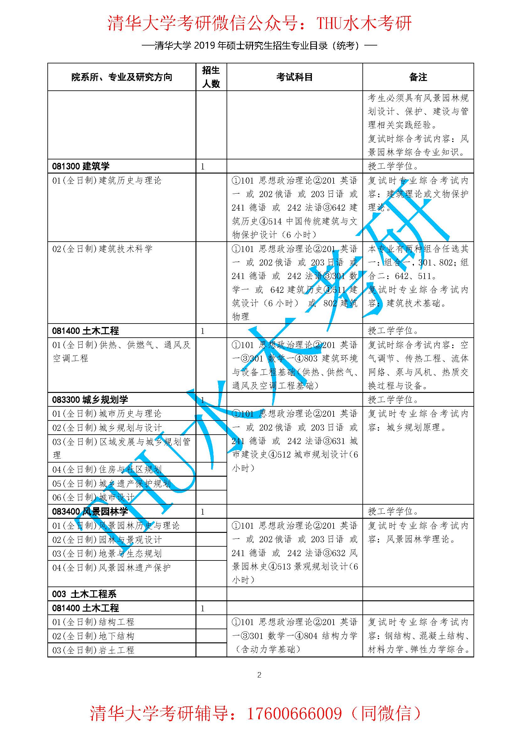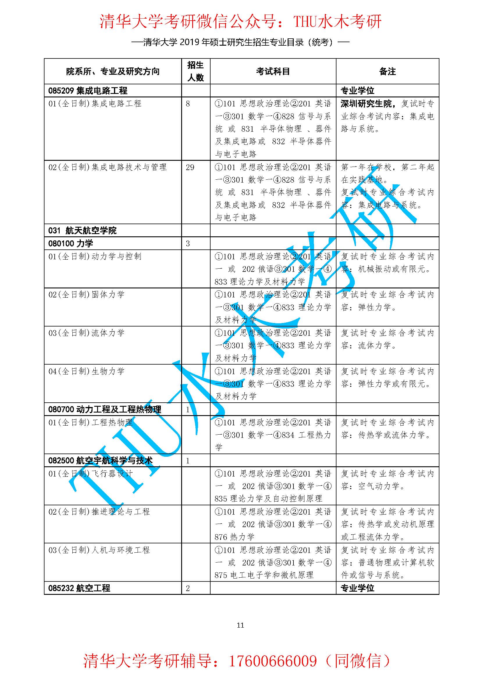 2019年清华大学硕士研究生招生专业目录、招生人数