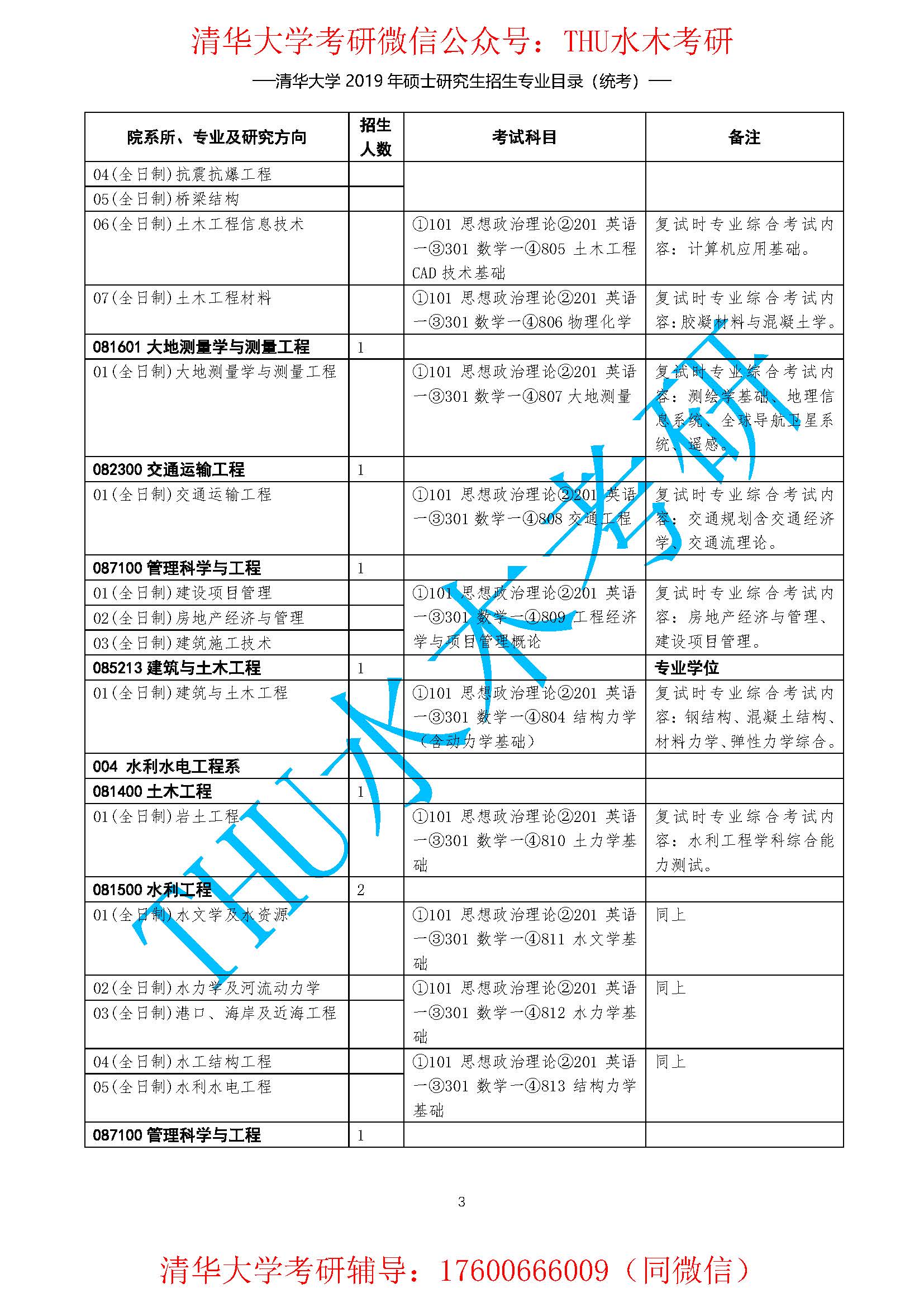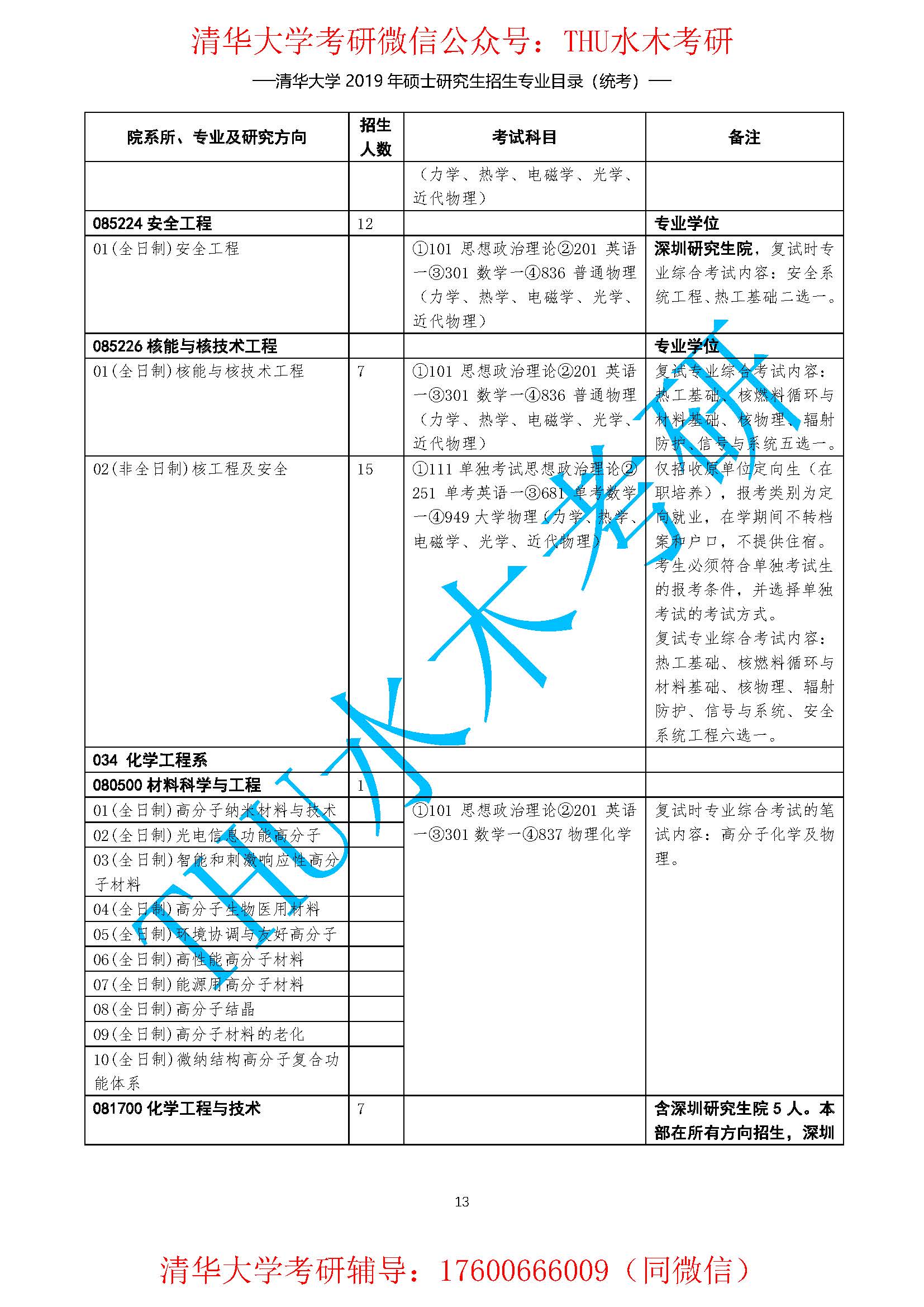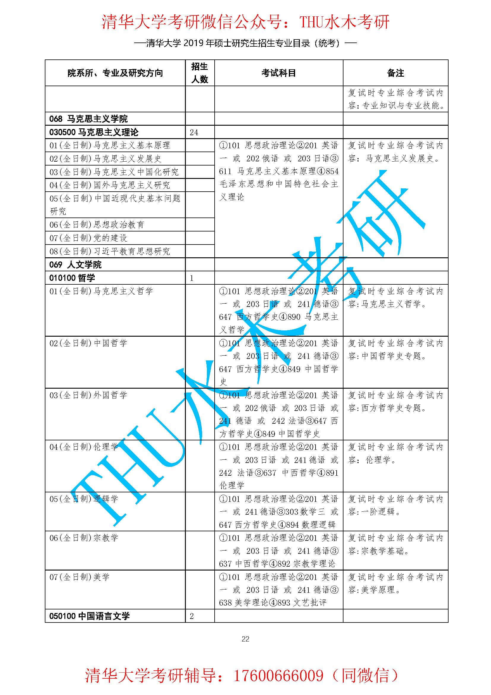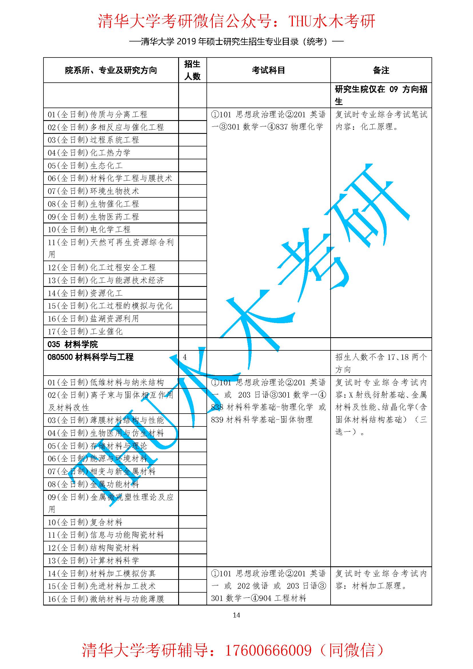 2019年清华大学硕士研究生招生专业目录、招生人数