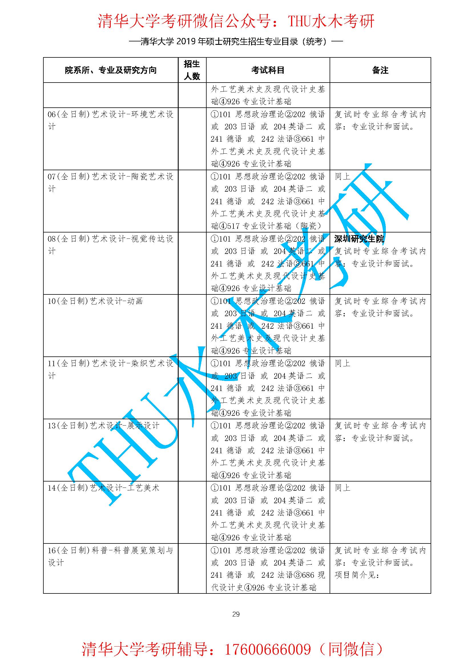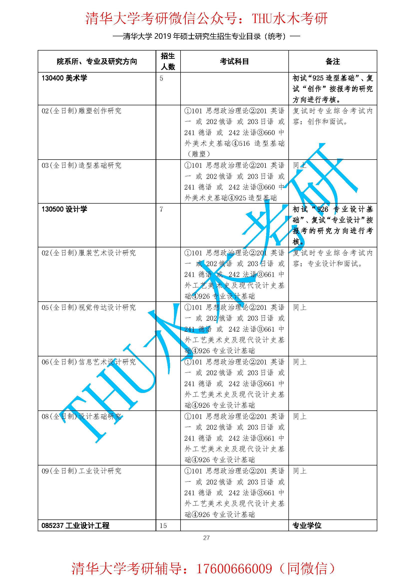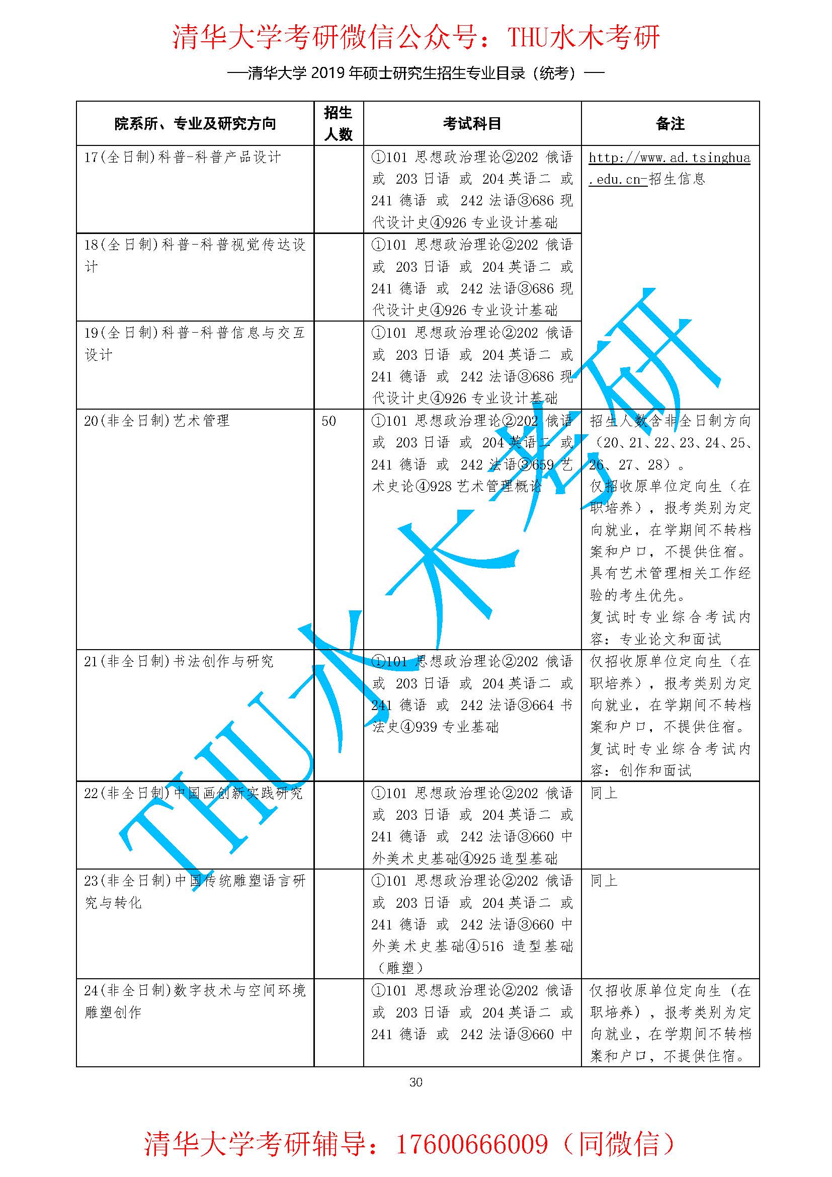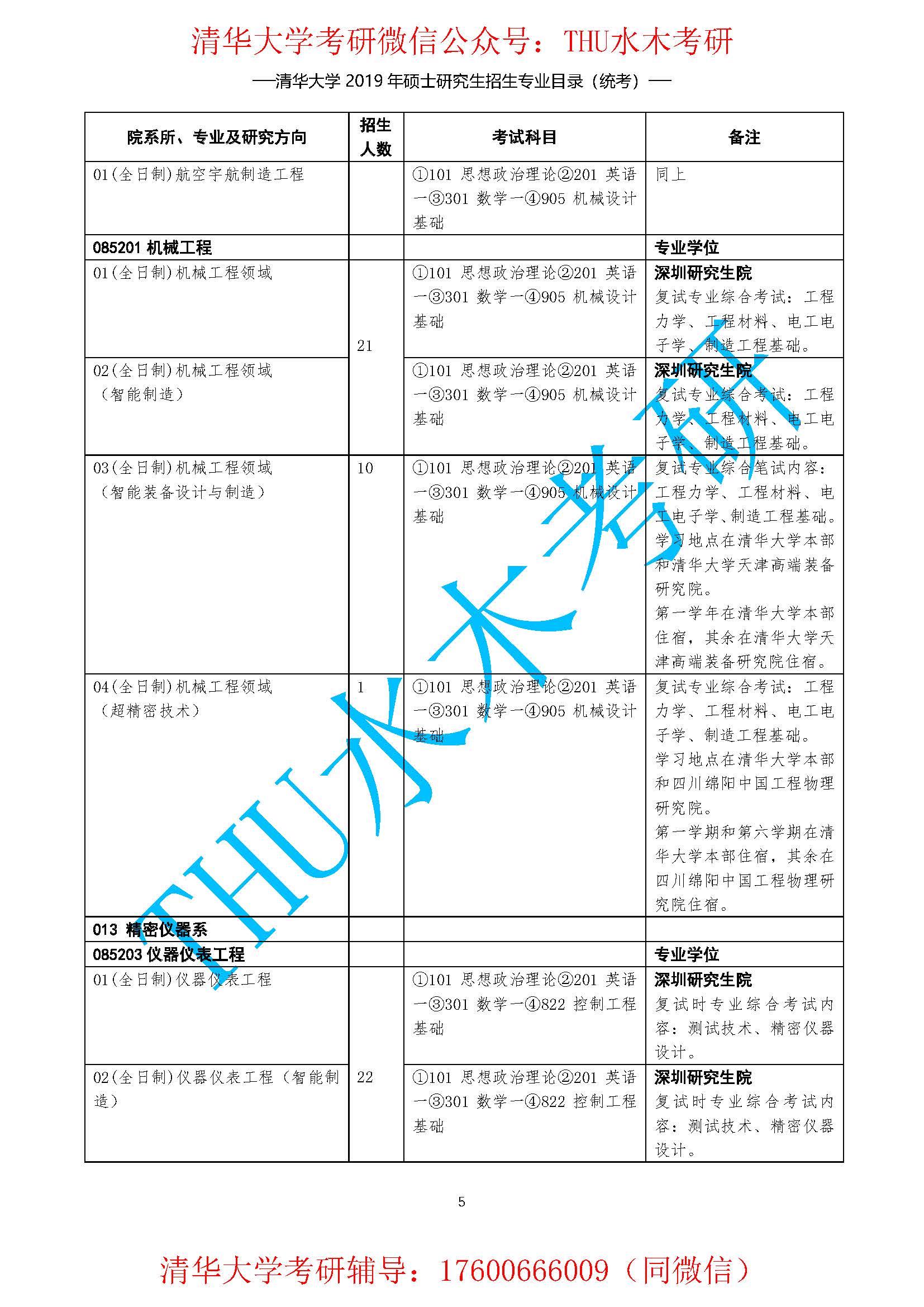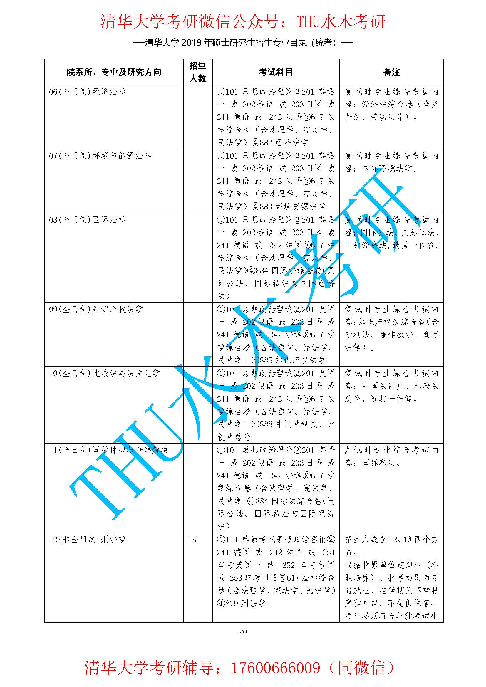 2019年清华大学硕士研究生招生专业目录、招生人数