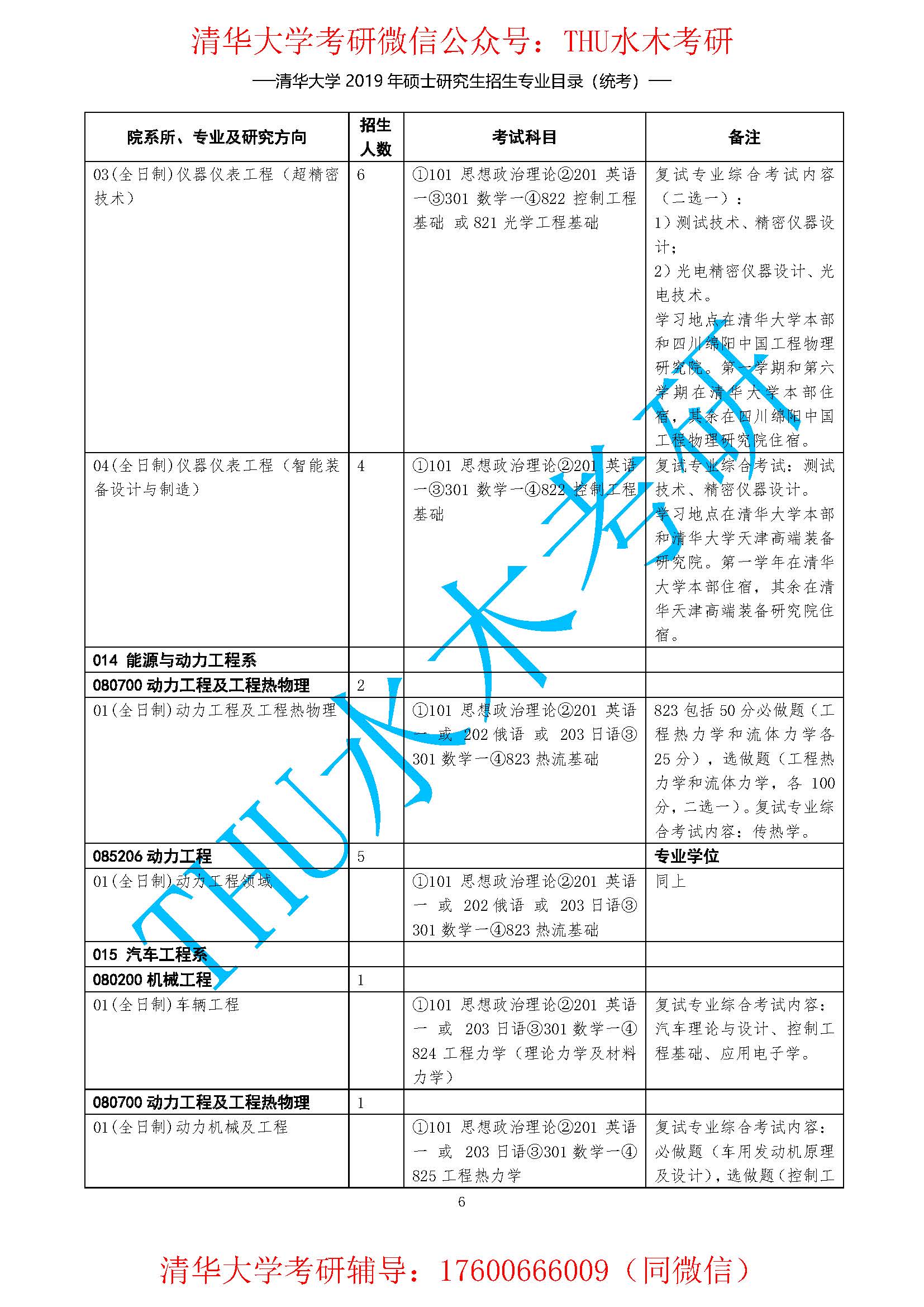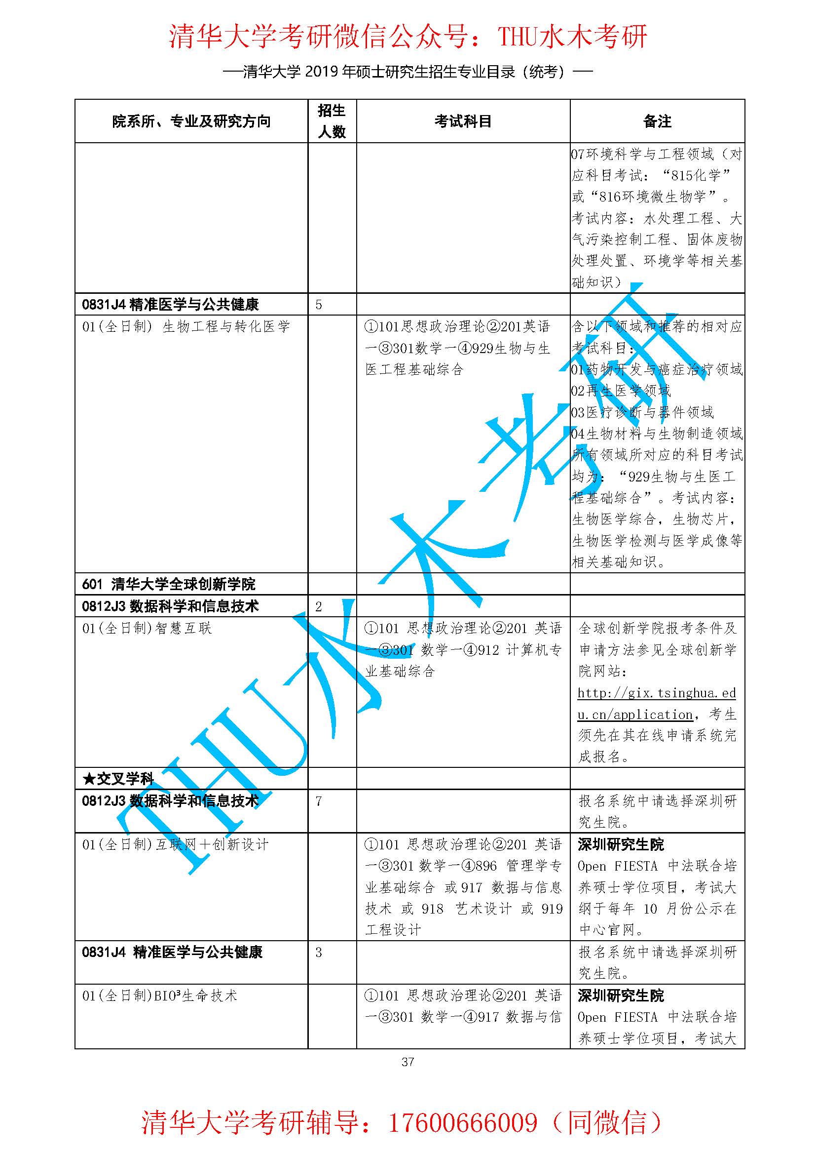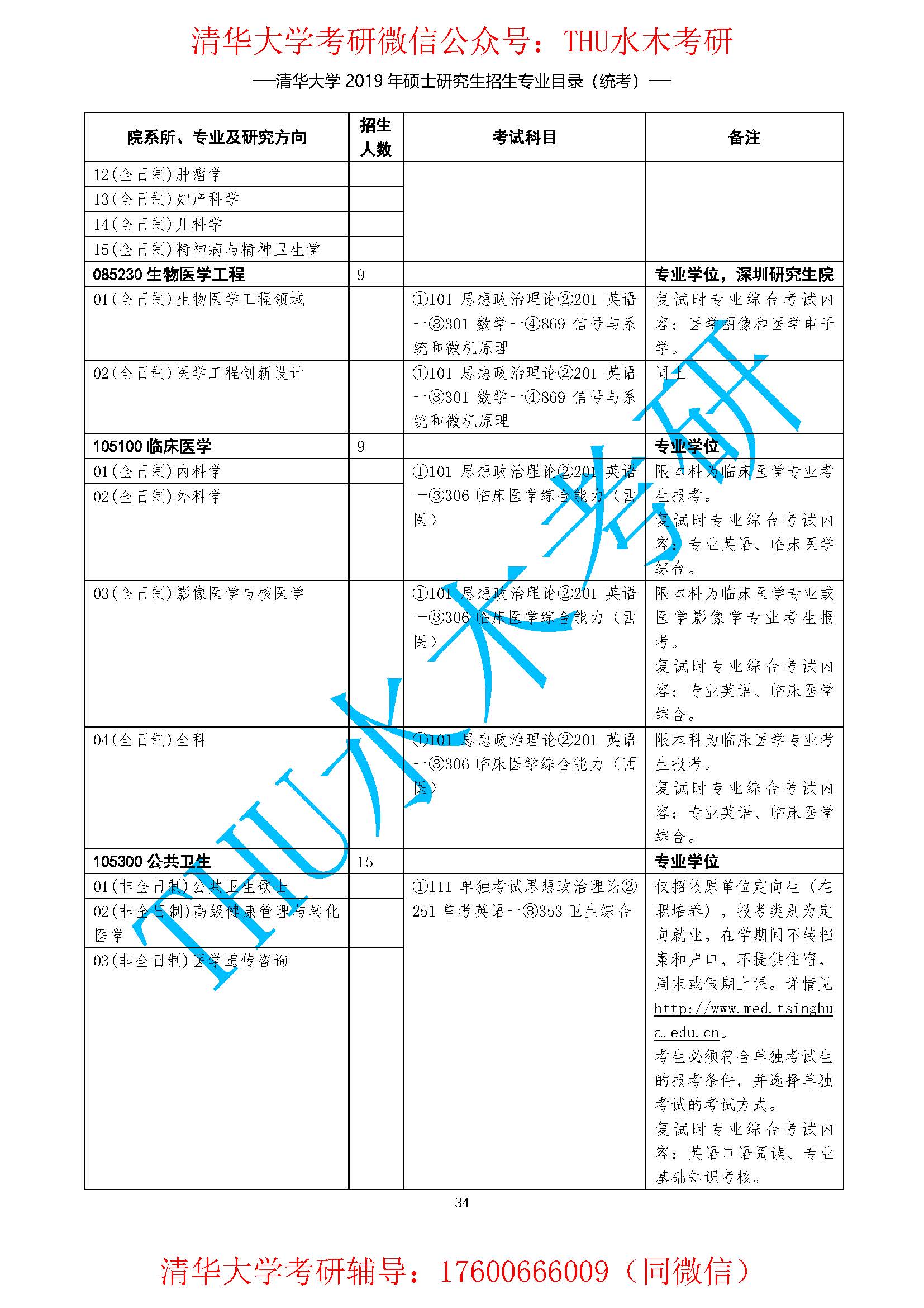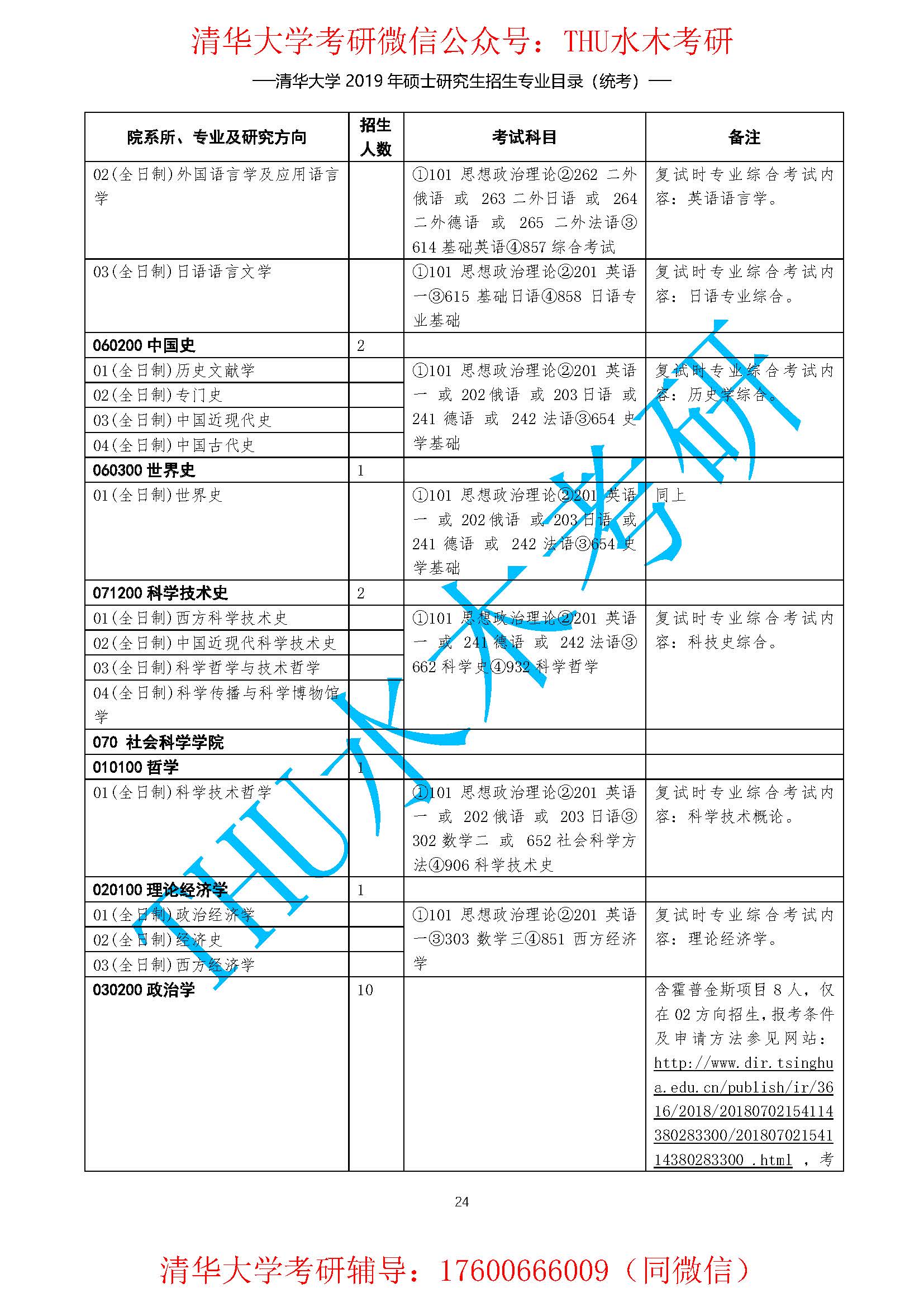 2019年清华大学硕士研究生招生专业目录、招生人数