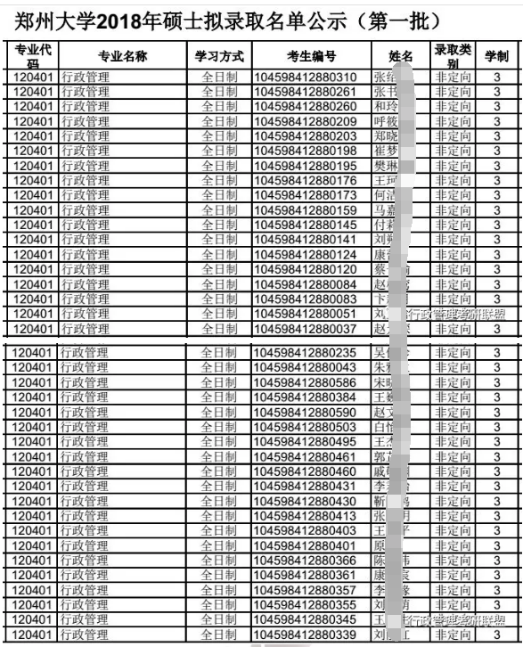 五、2018年郑州大学行政管理考研拟录取名单