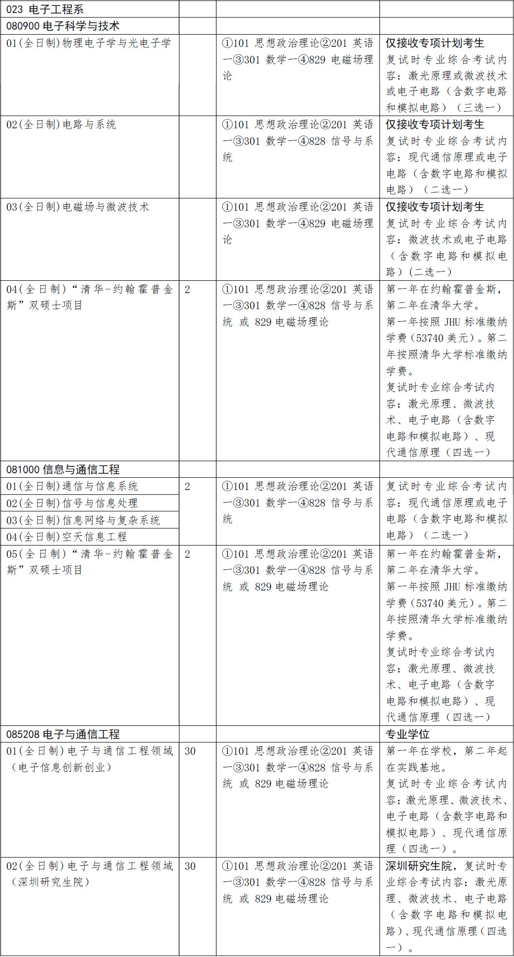 2019年清华大学电子工程系考研招生专业、招生人数、考试科目