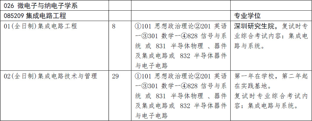2019年清华大学微电子与纳电子学系考研招生专业、招生人数、考试科目
