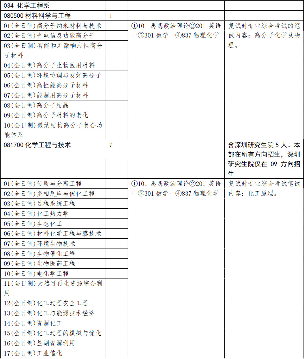 2019年清华大学化学工程系考研招生专业、招生人数、考试科目