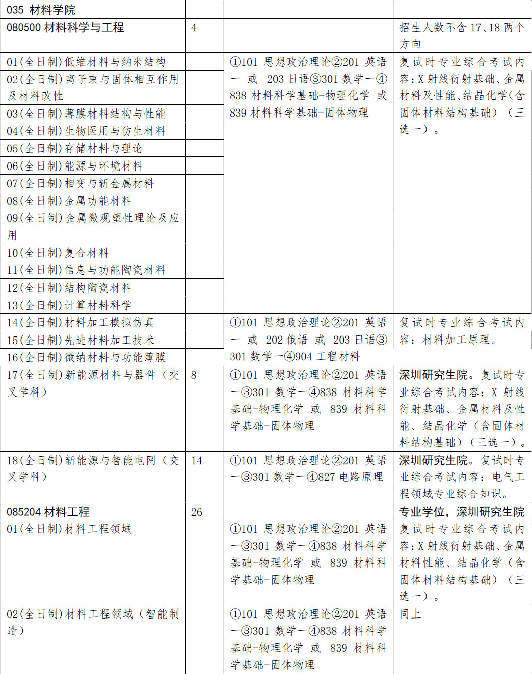 2019年清华大学材料学院考研招生专业、招生人数、考试科目