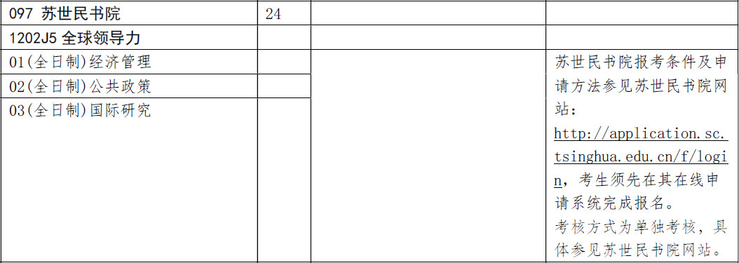 2019年清华大学苏世民书院考研招生专业、招生人数、考试科目